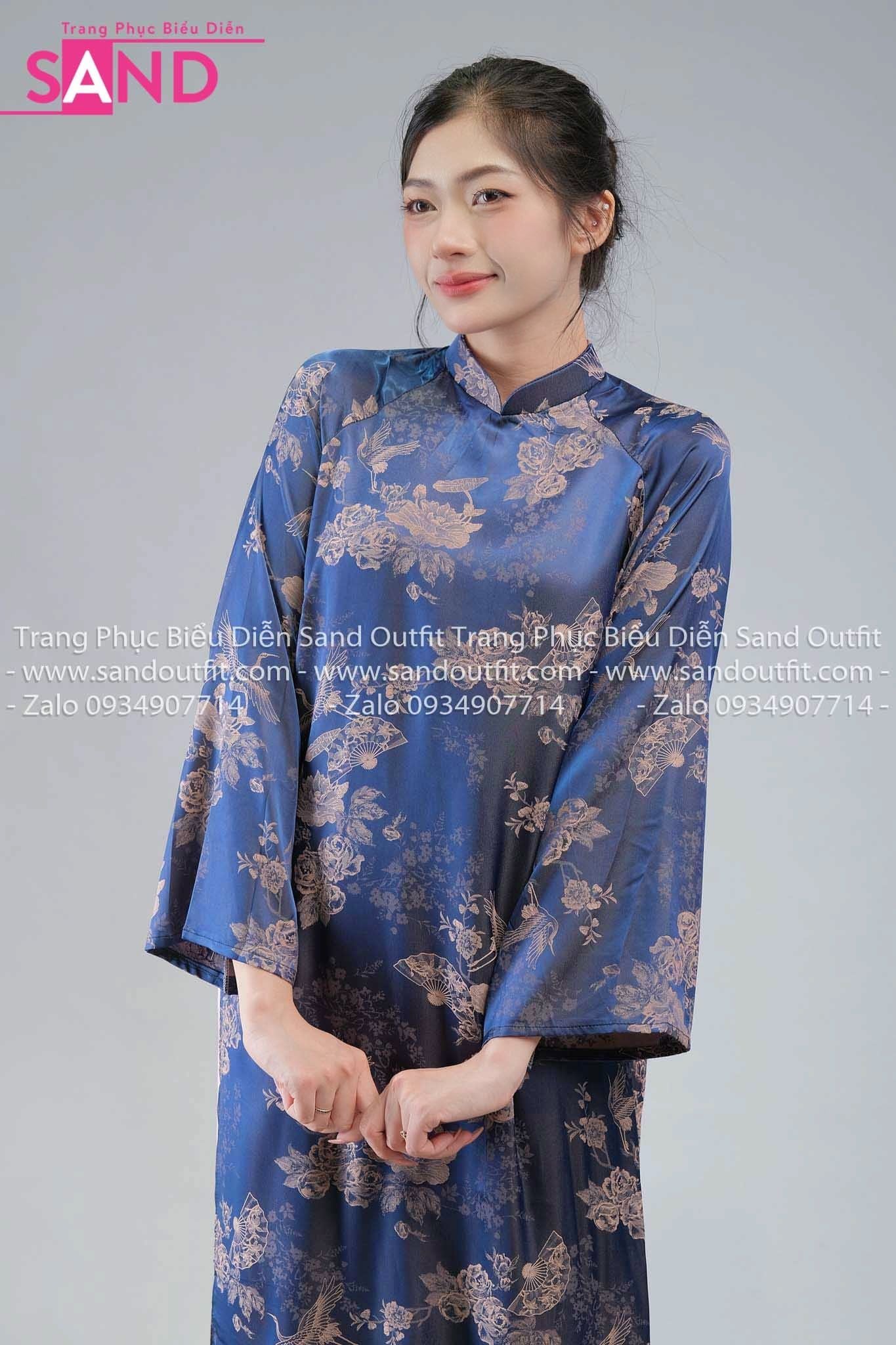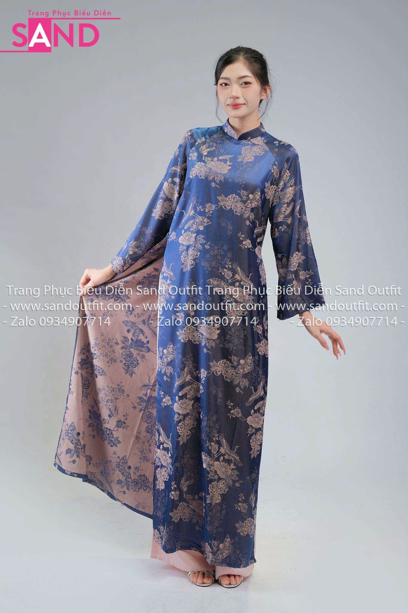 TAC0824 Áo Dài Nũ Cách Tân Gâm Suông Hồng Hạc - Xanh