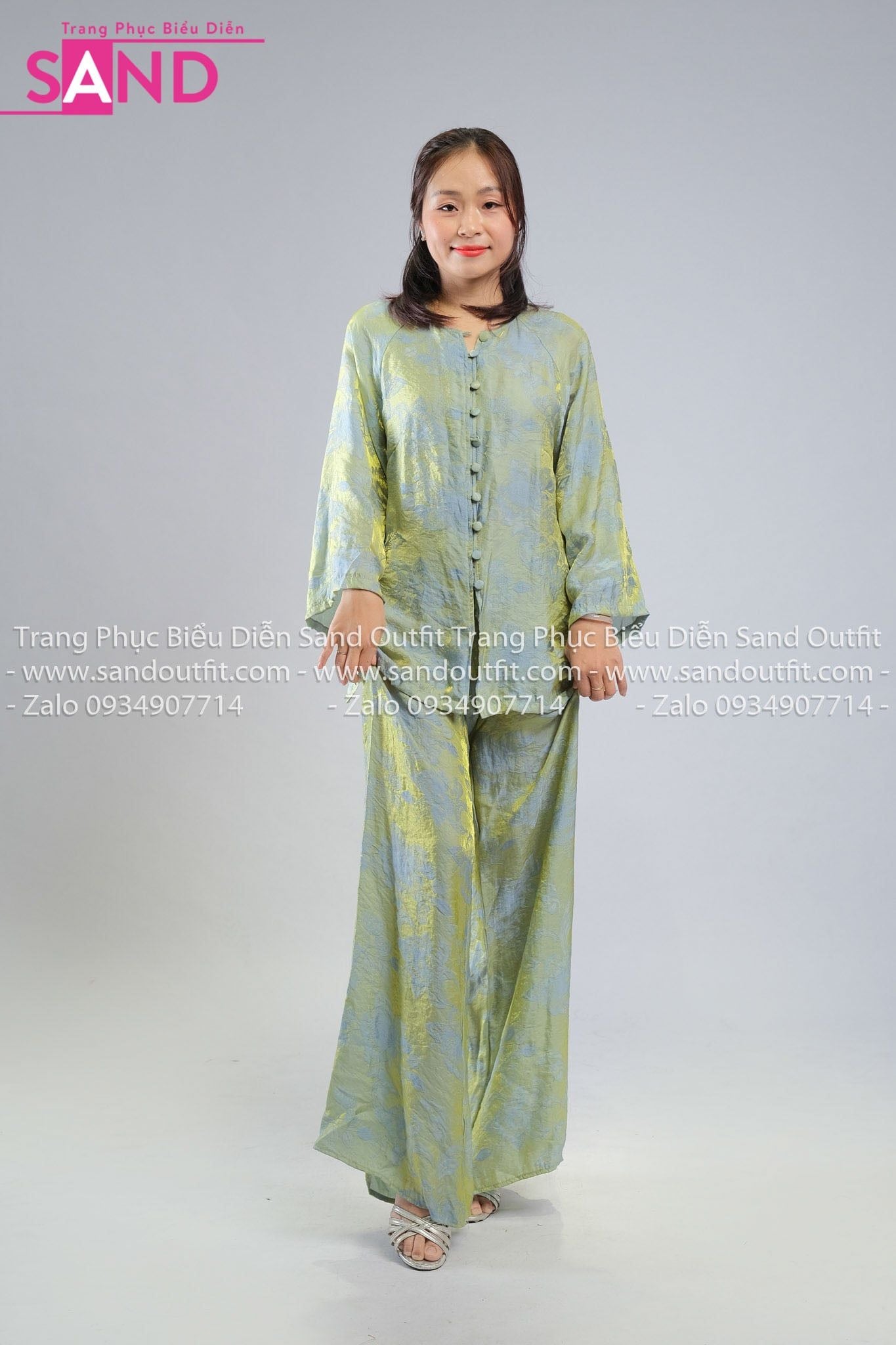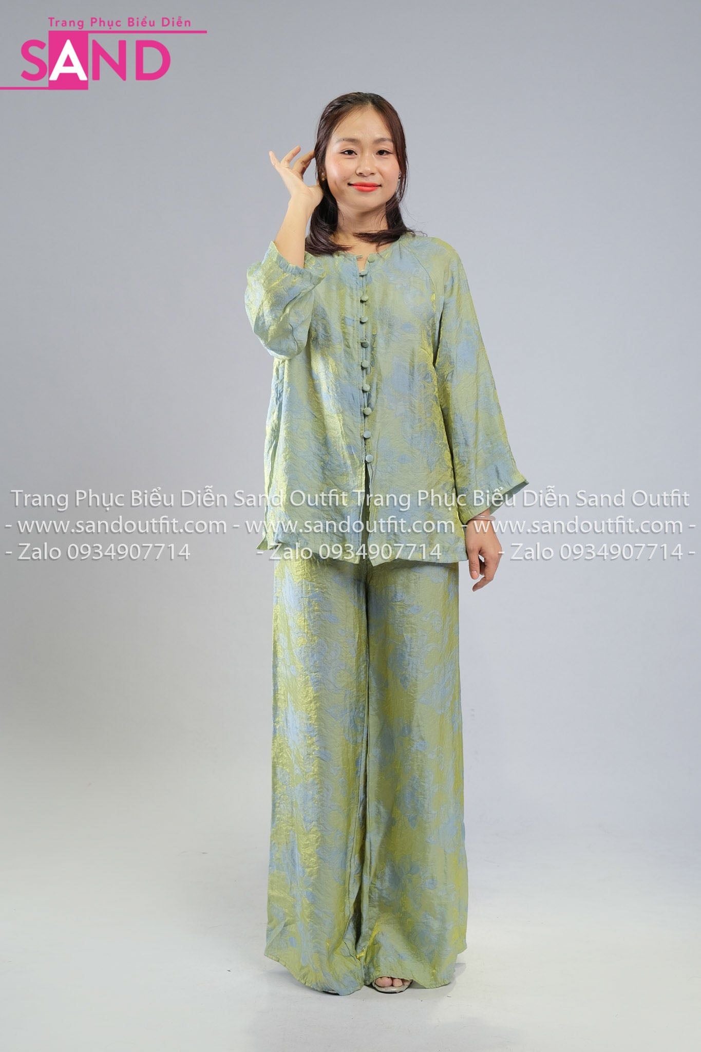 TBC0901 Set Bà Ba Chất Liệu Tơ Tencel Đính Cúc Mở - Xanh Lá