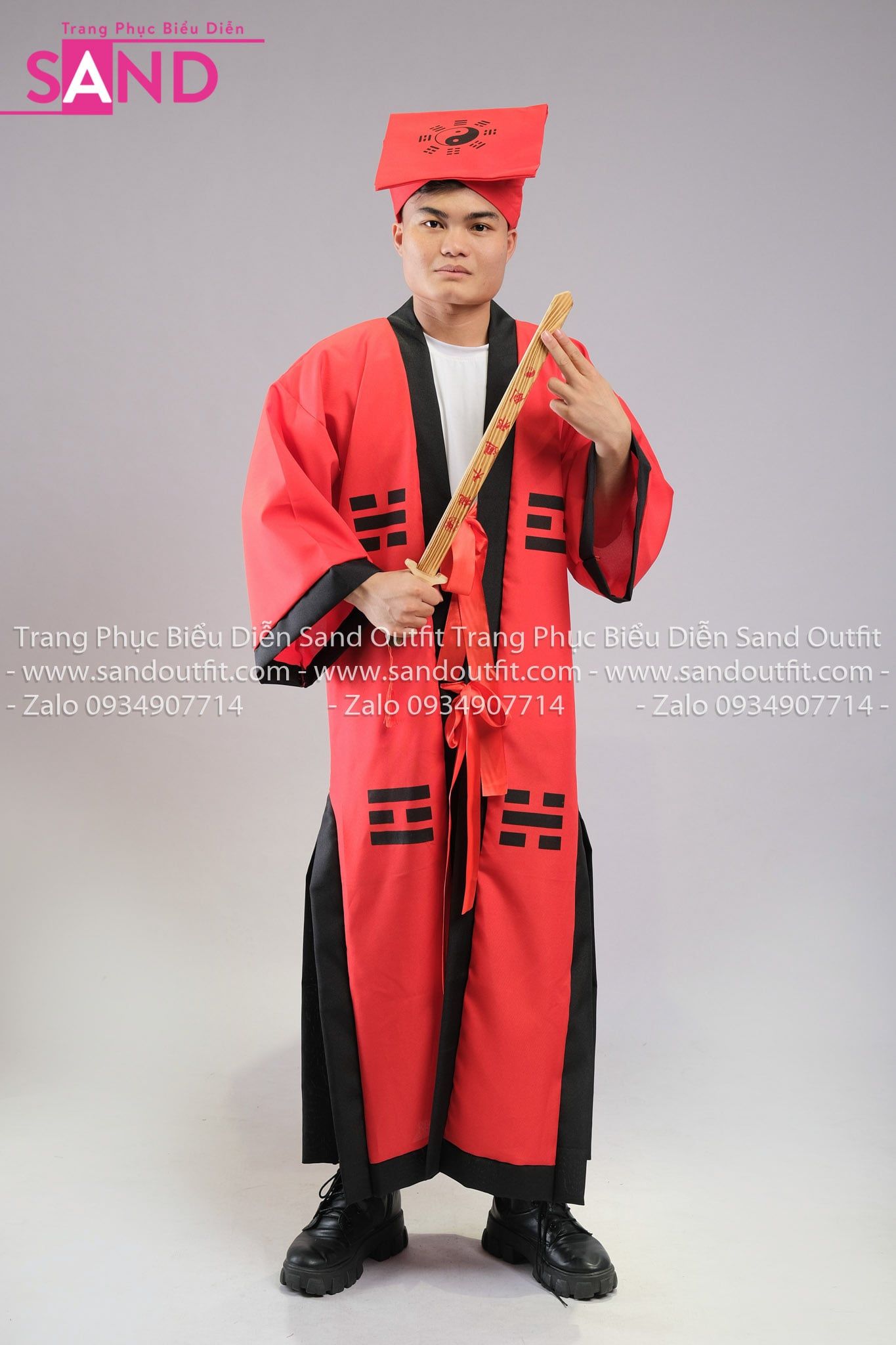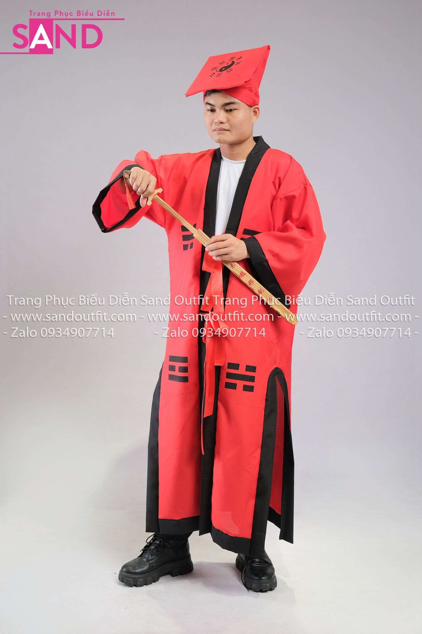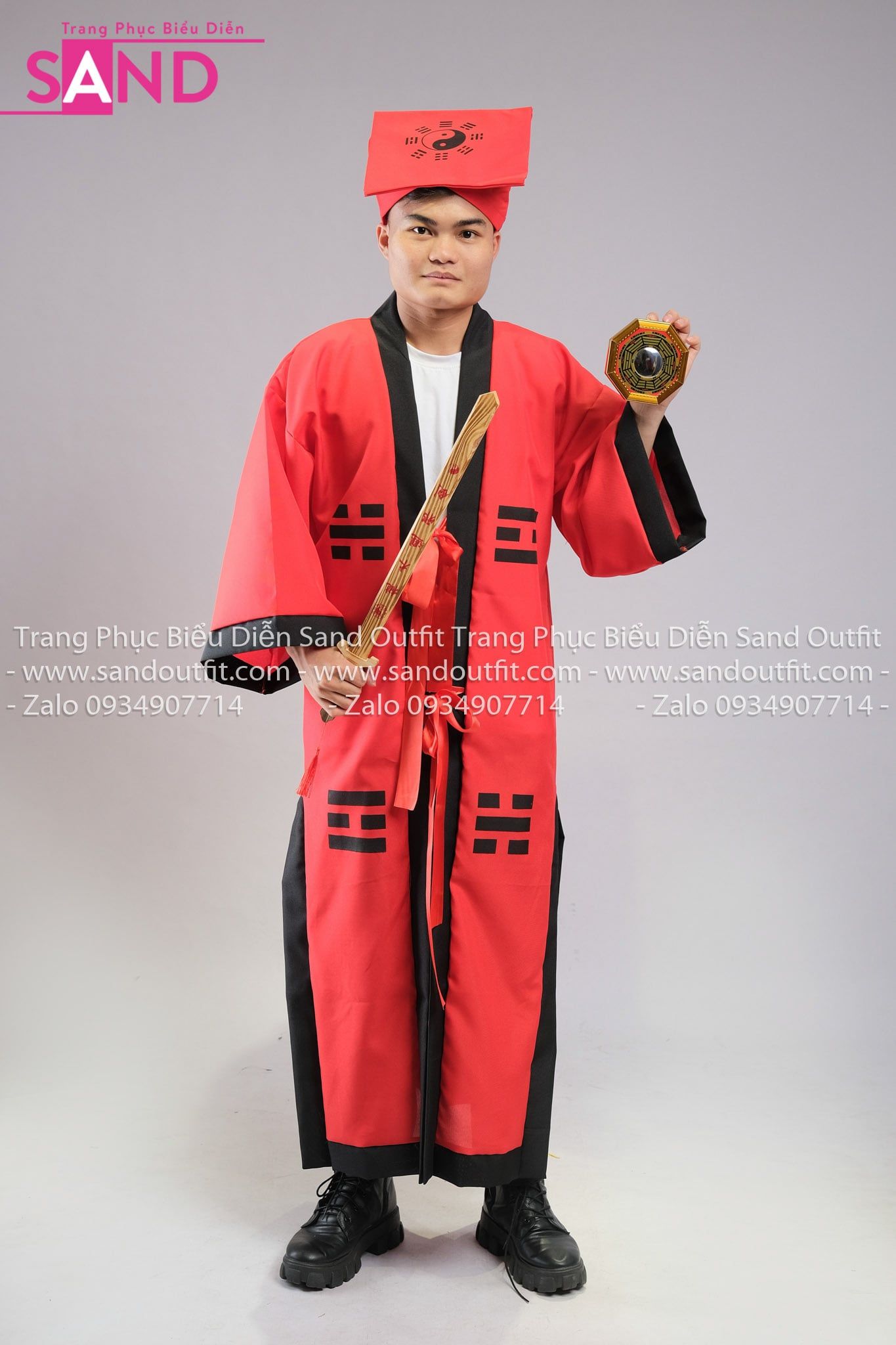 TDN0406 Trang Phục Hoá Trang Đạo Sĩ Mao Sơn Thái Cực Bát Quái - Đỏ