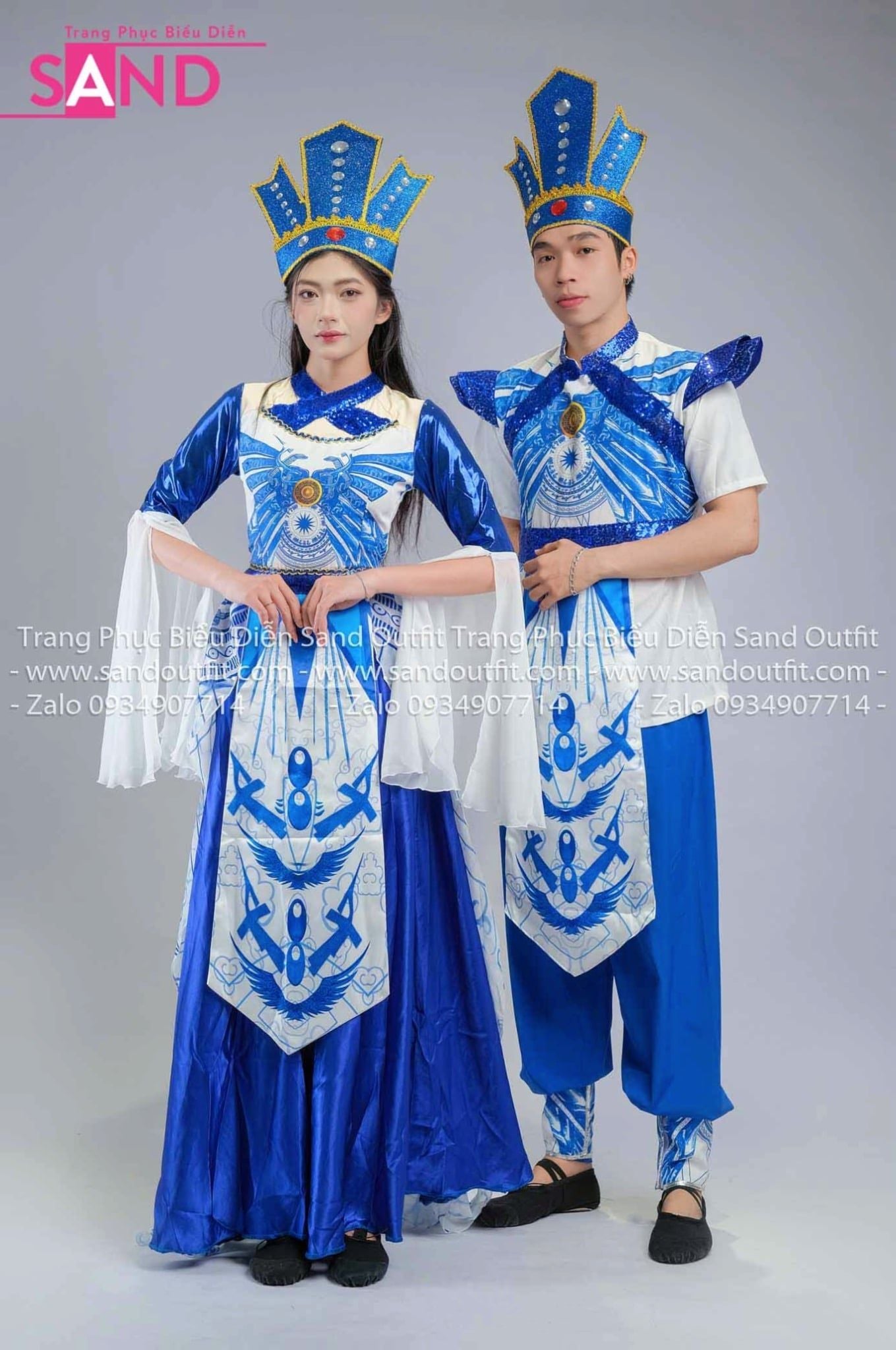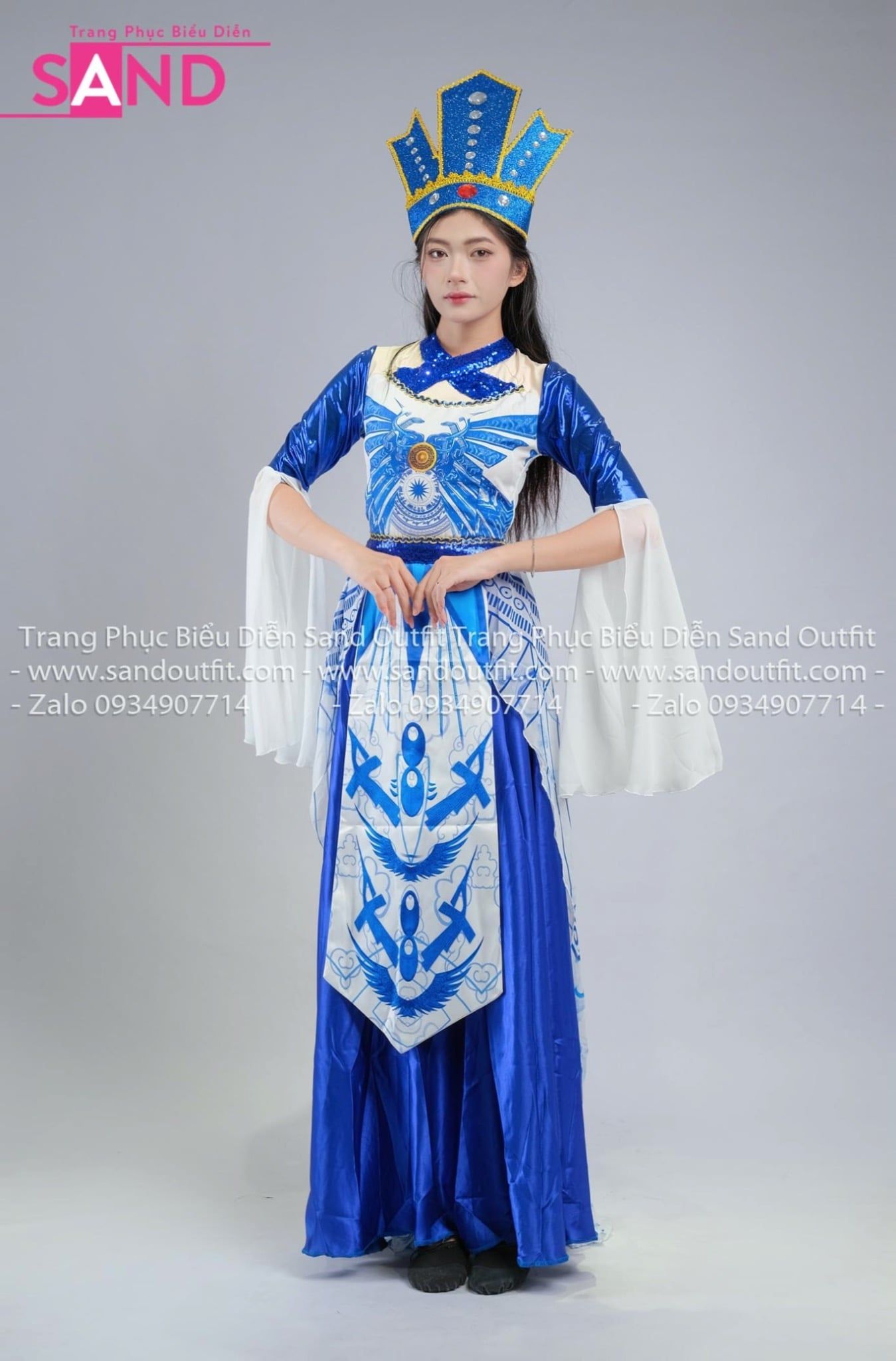 THL0803 Trang Phục Âu Lạc Xanh Cách Tân - Nữ