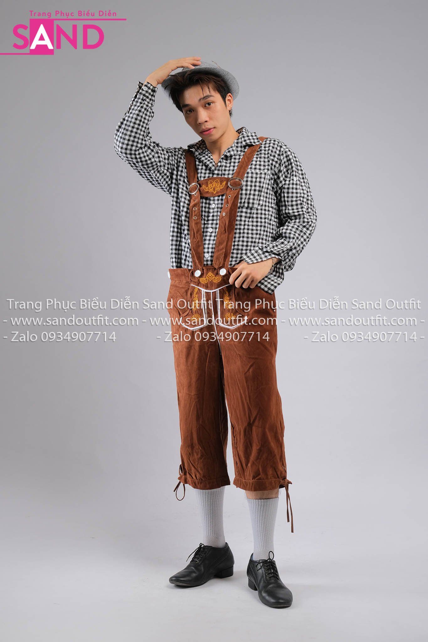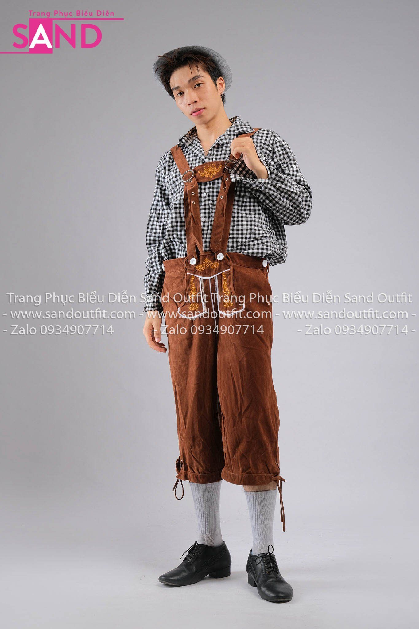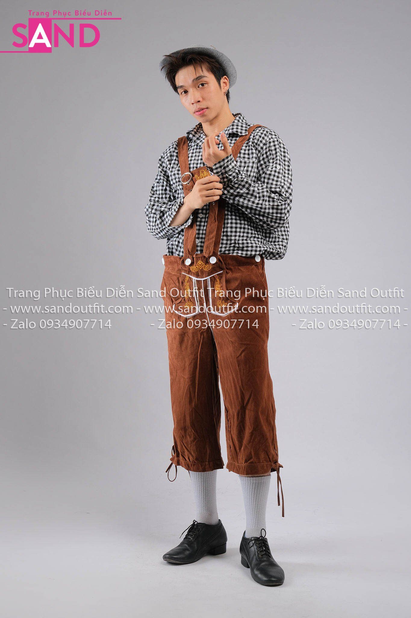 Trang Phục Bia Đức TND0102 Áo Sơ Caro Đen TND0401 Quần Lửng Nâu kèm DNN1301 Mũ Xám