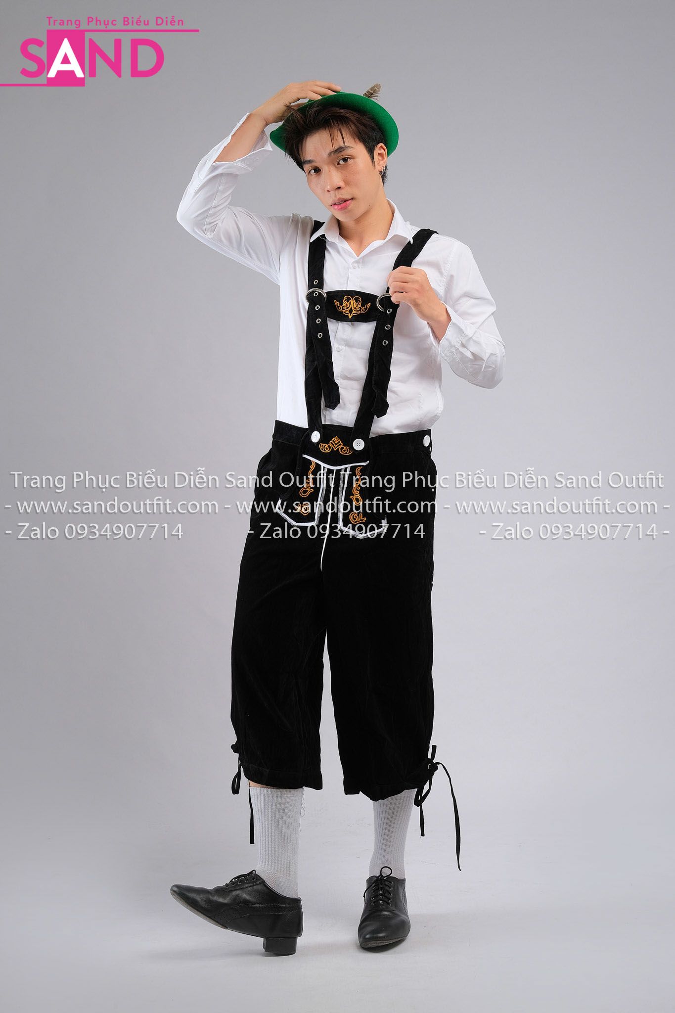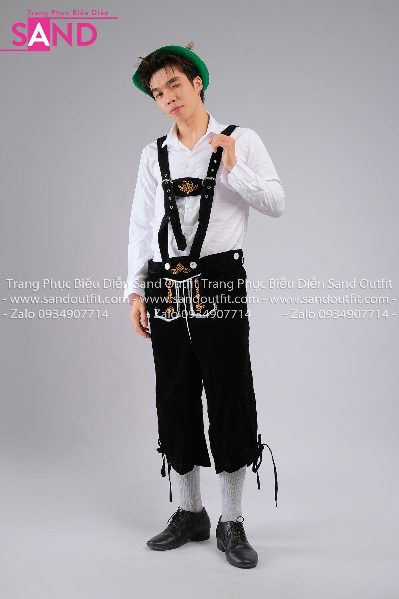 Trang Phục Bia Đức HAS0001 Áo Sơ Mi Trắng phối TND0102 Quần Lửng Đen kèm DNN0901 Mũ Bia Đức Xanh