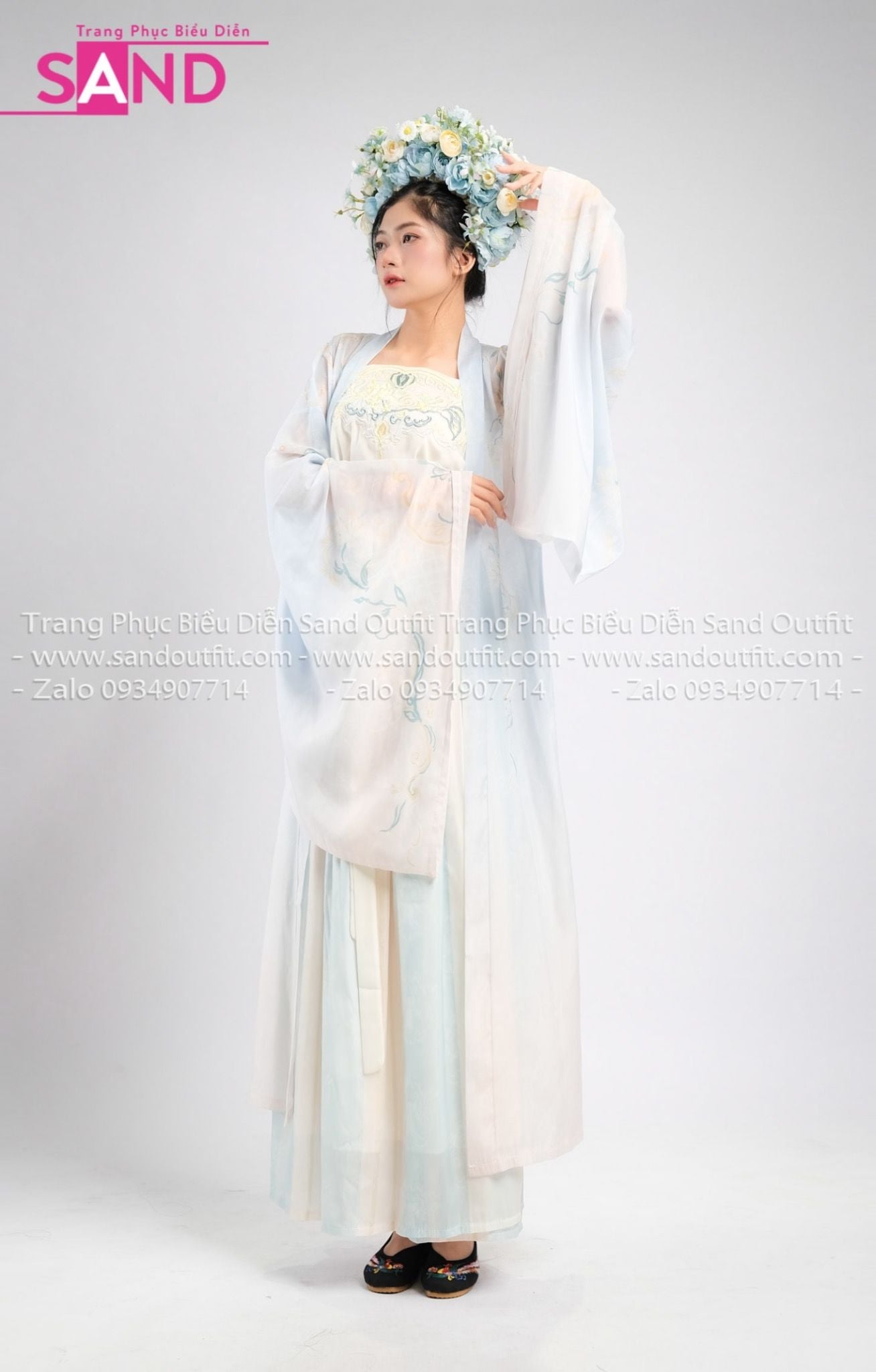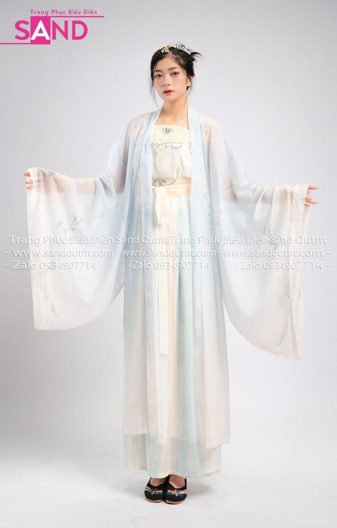 TNQ0803 Trang Phục Cổ Trang Xanh Dương Nhạt Khoác Xanh Thêu Hoạ Tiết