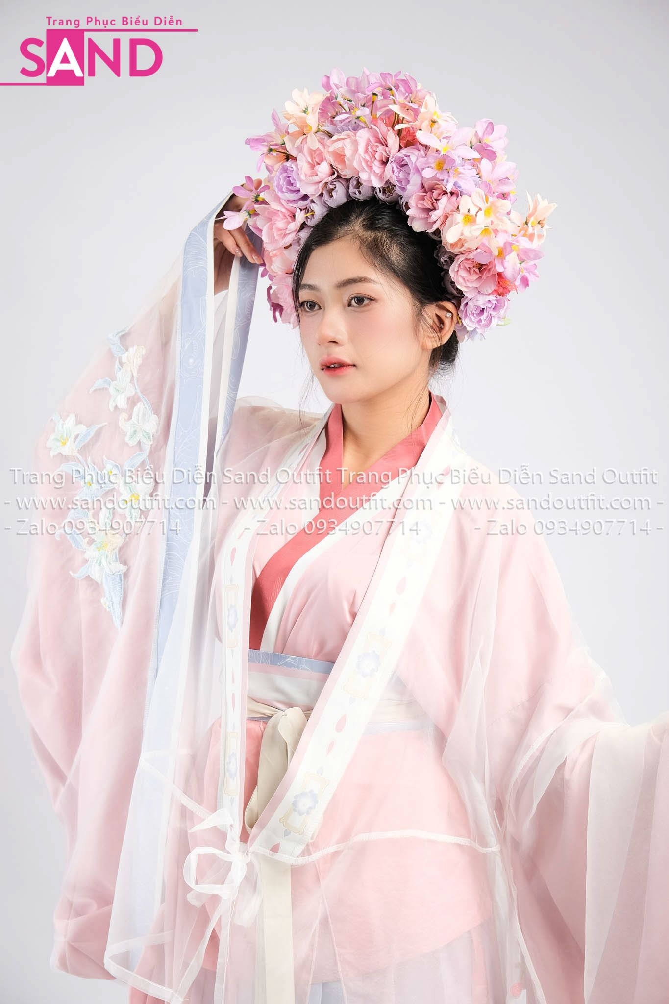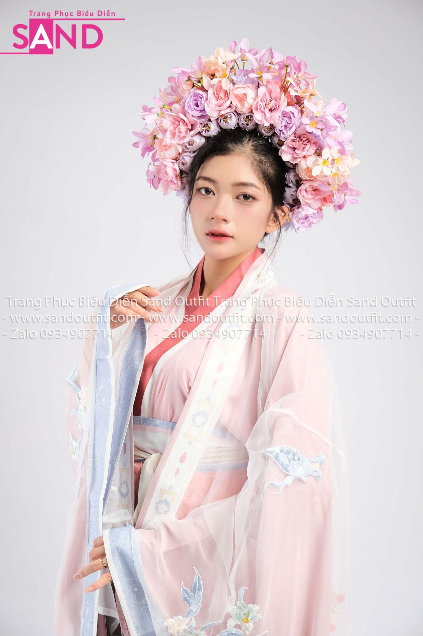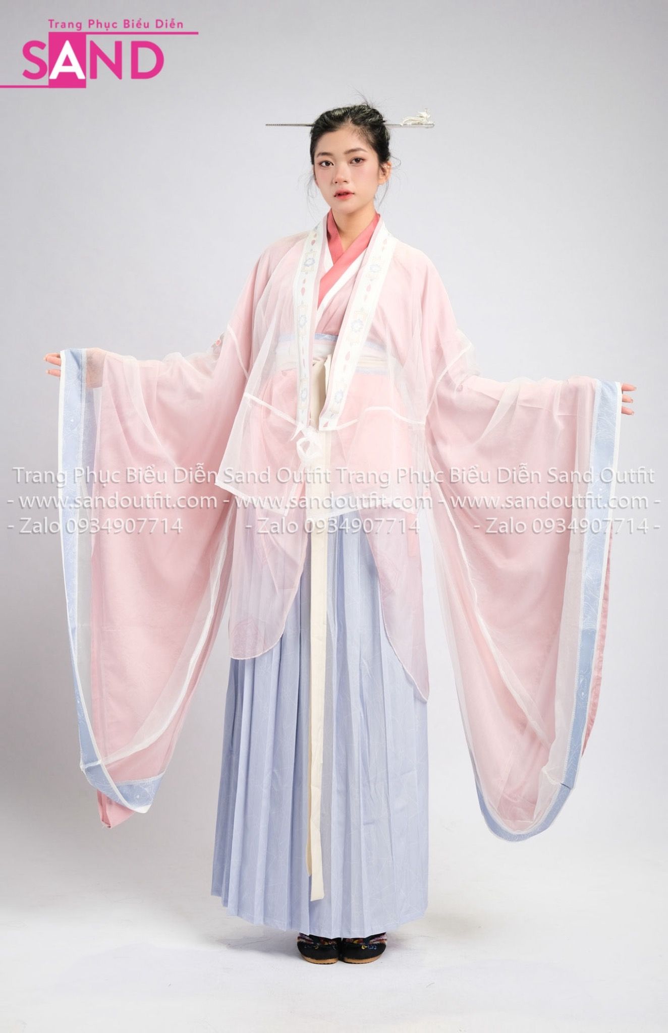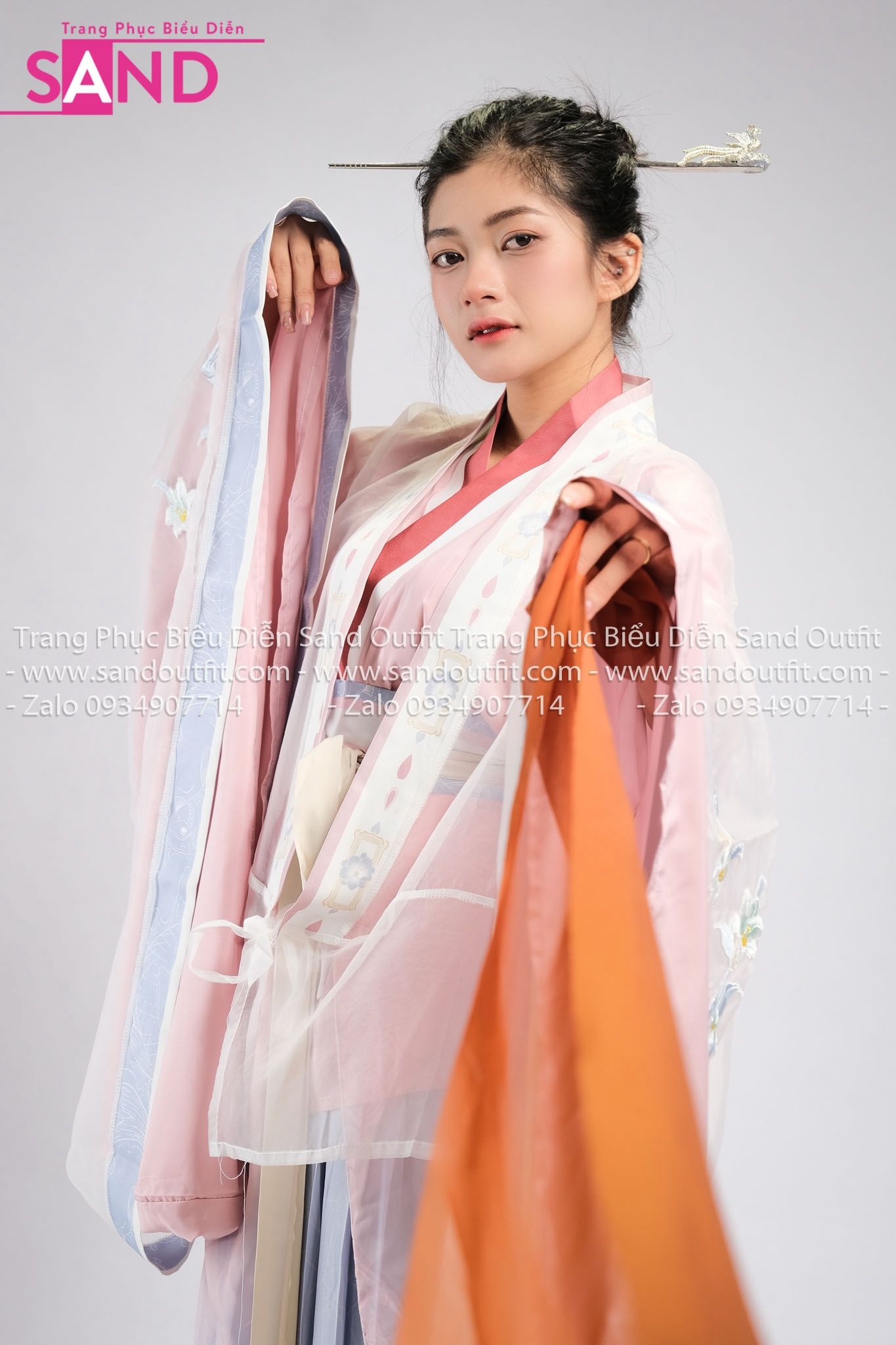 TNQ0502 Trang Phục Cổ Trang Xanh Hồng Nhạt Khoác Xanh Thêu Hoạ Tiết