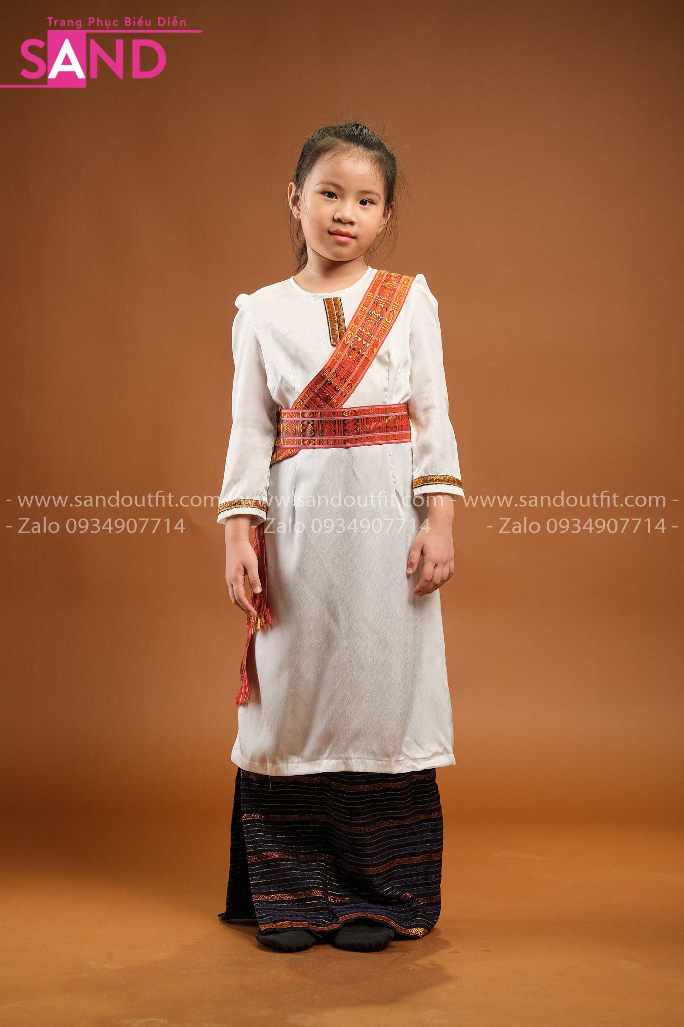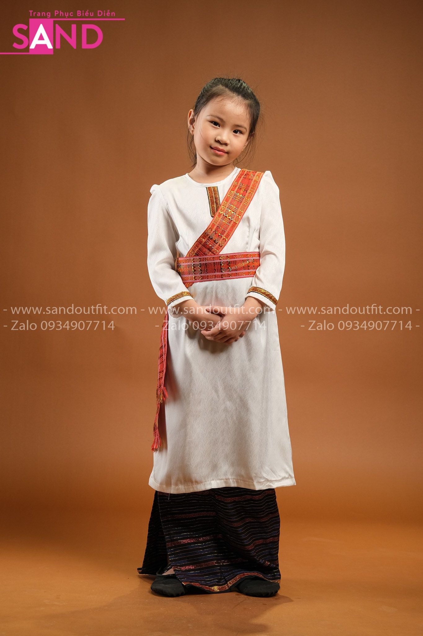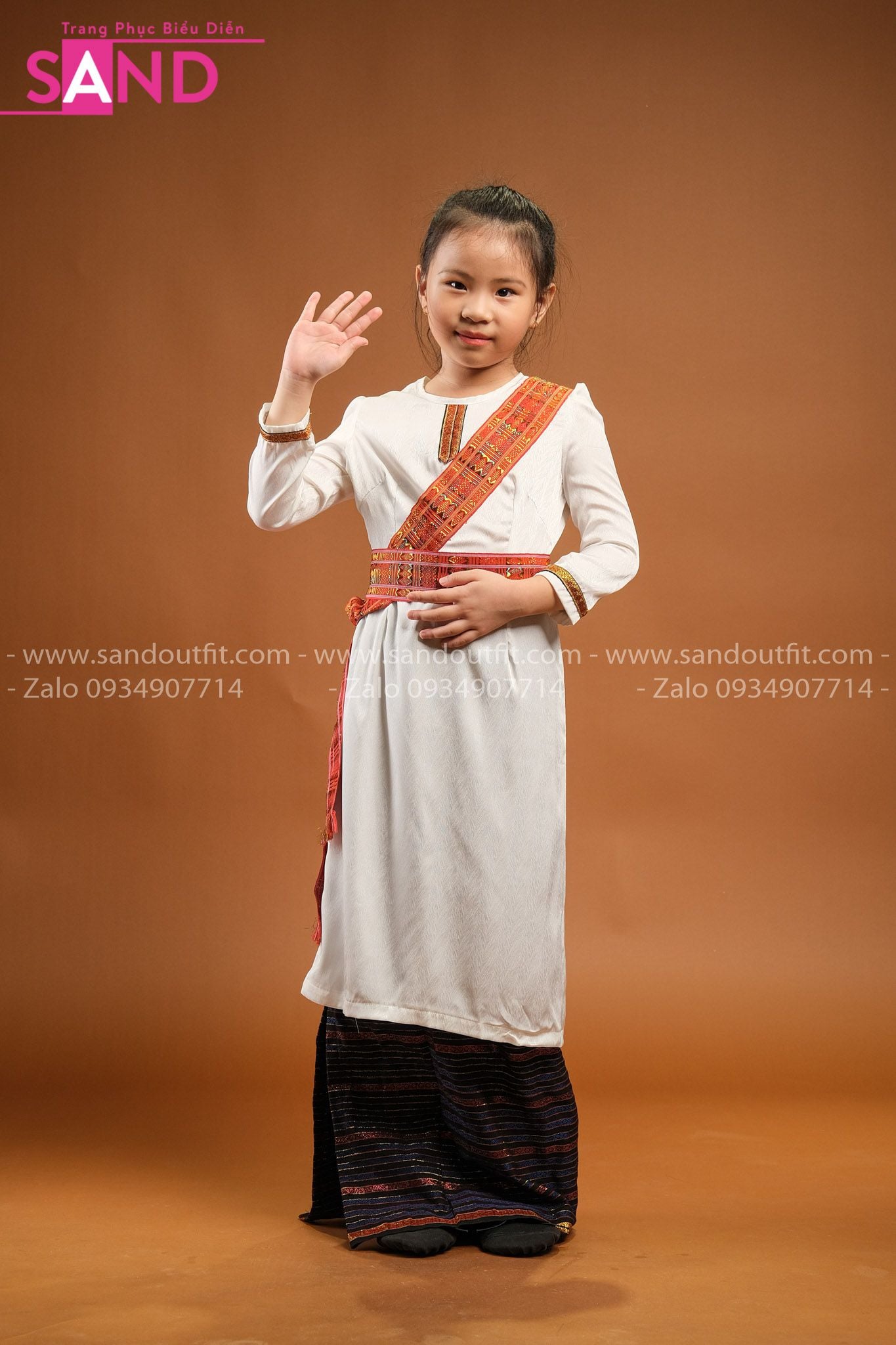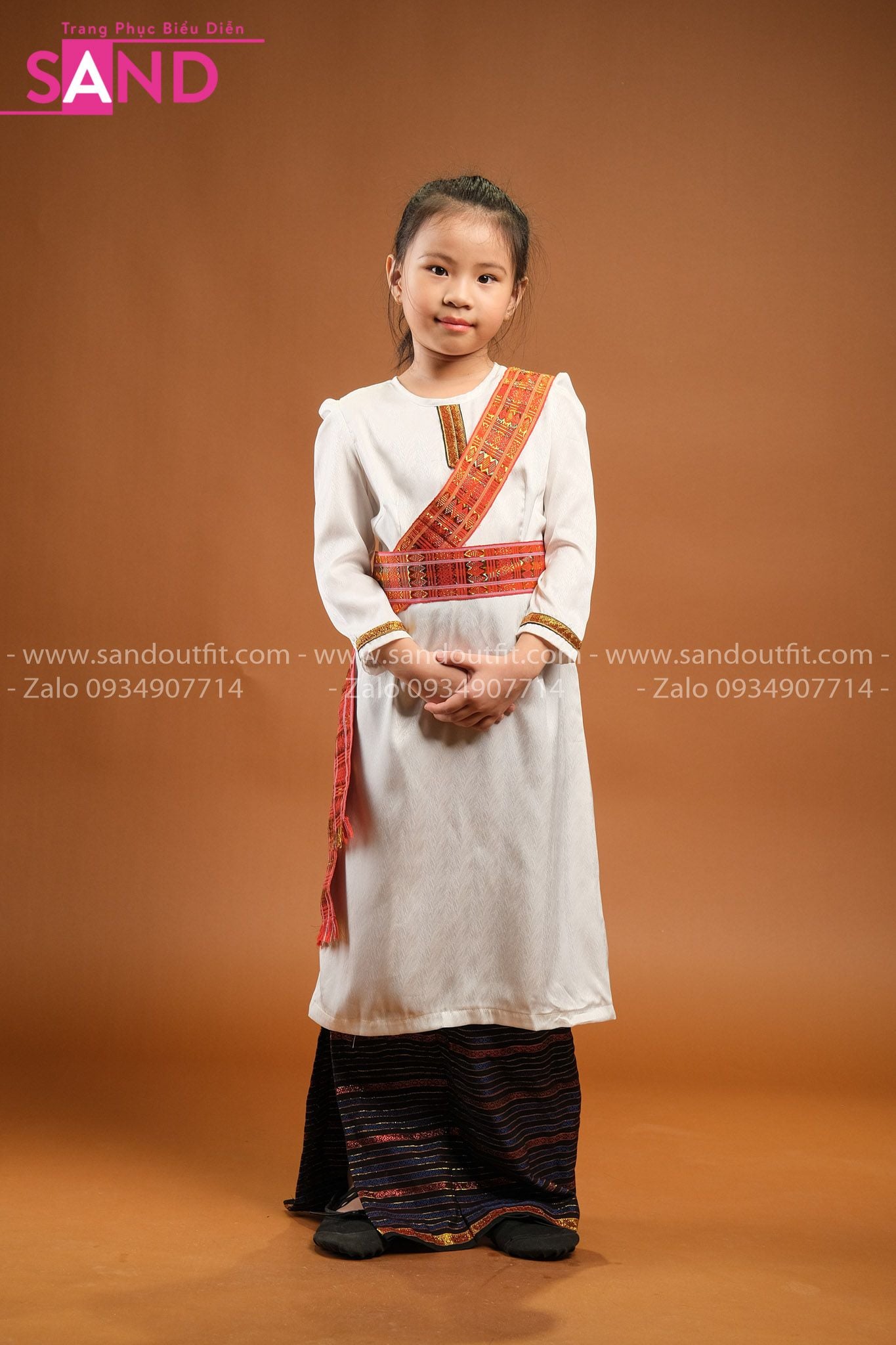 KCM0004 Trang Phục Dân Tộc Chăm Nữ Trắng Trẻ Em