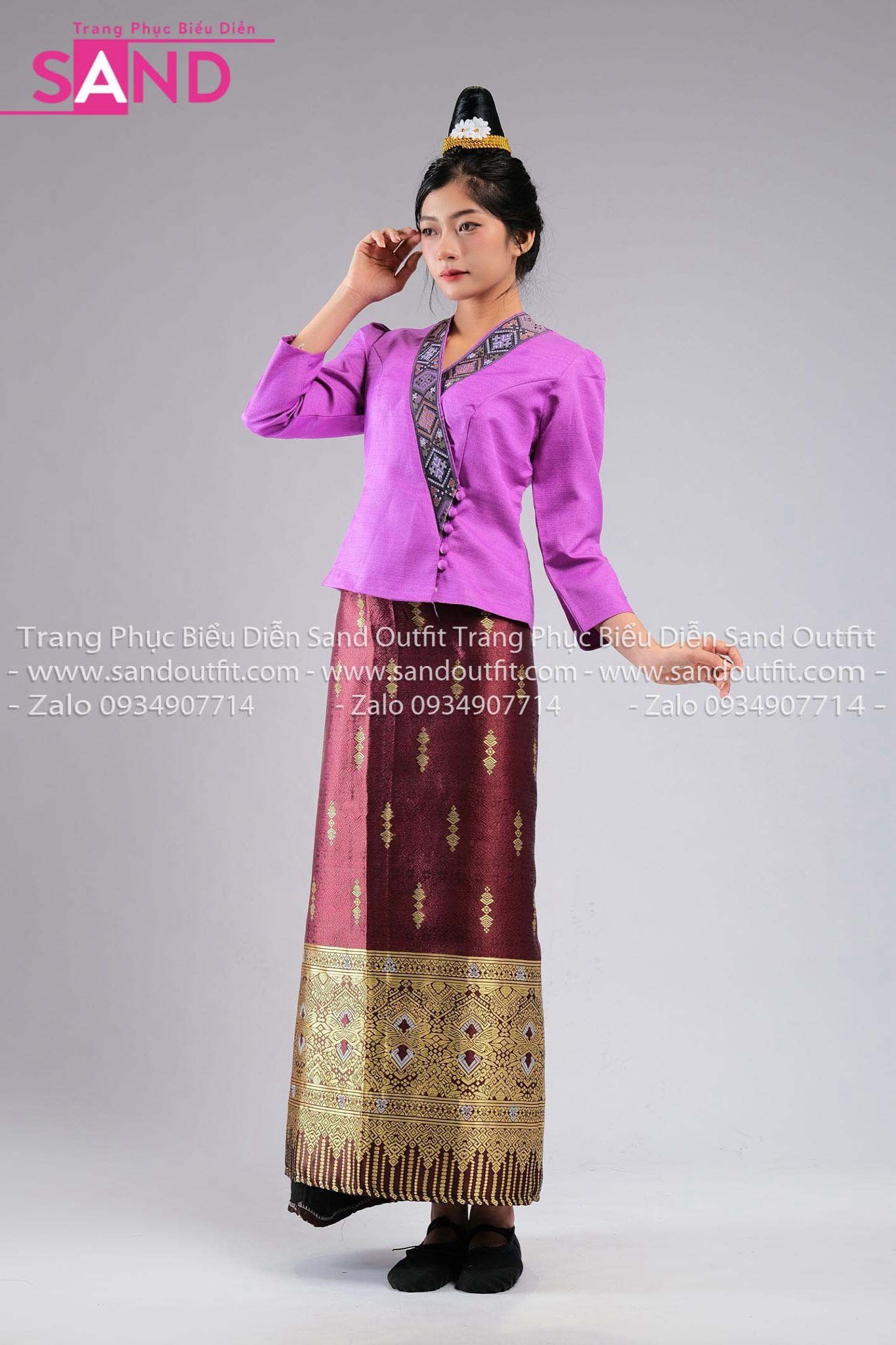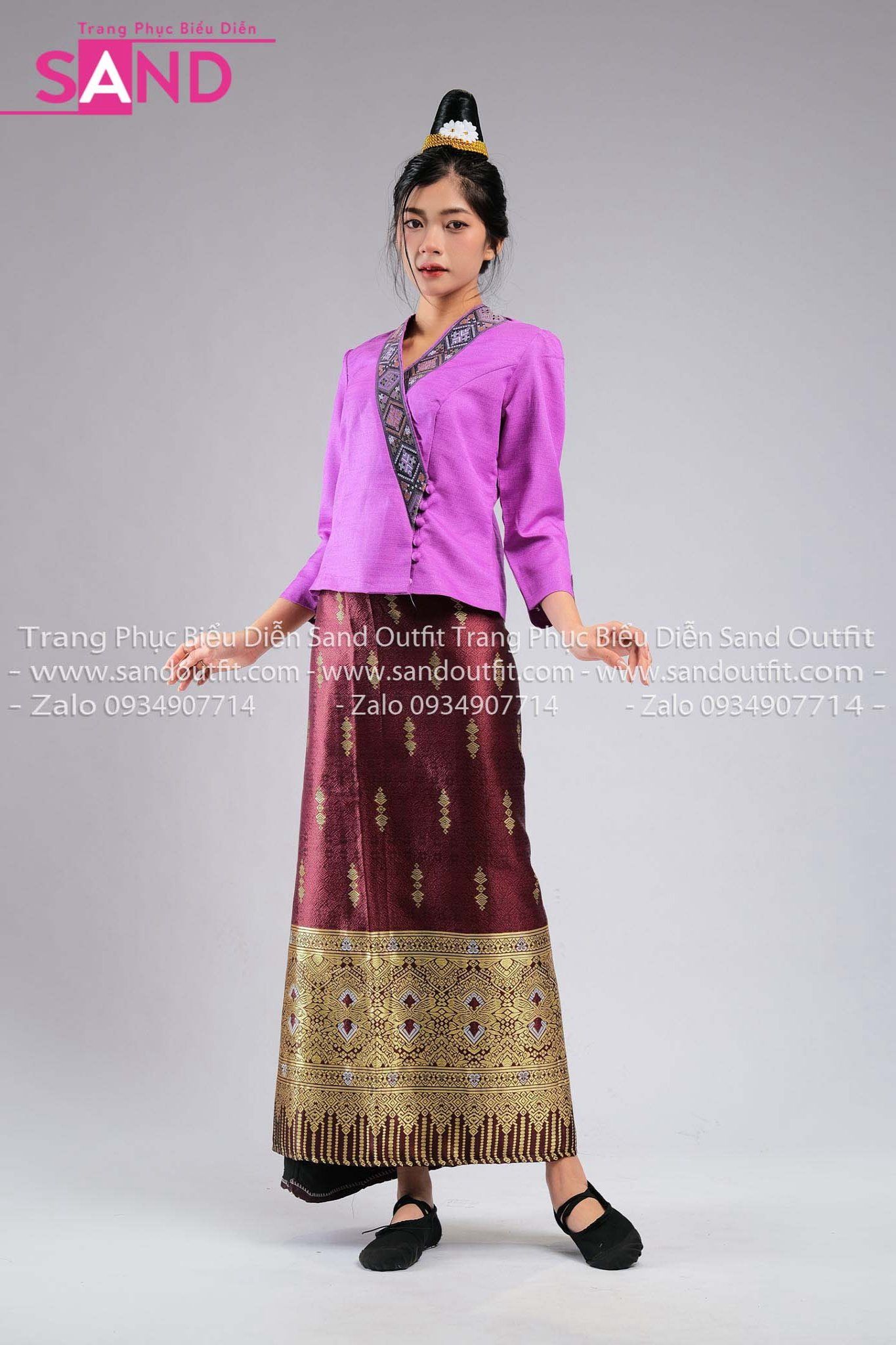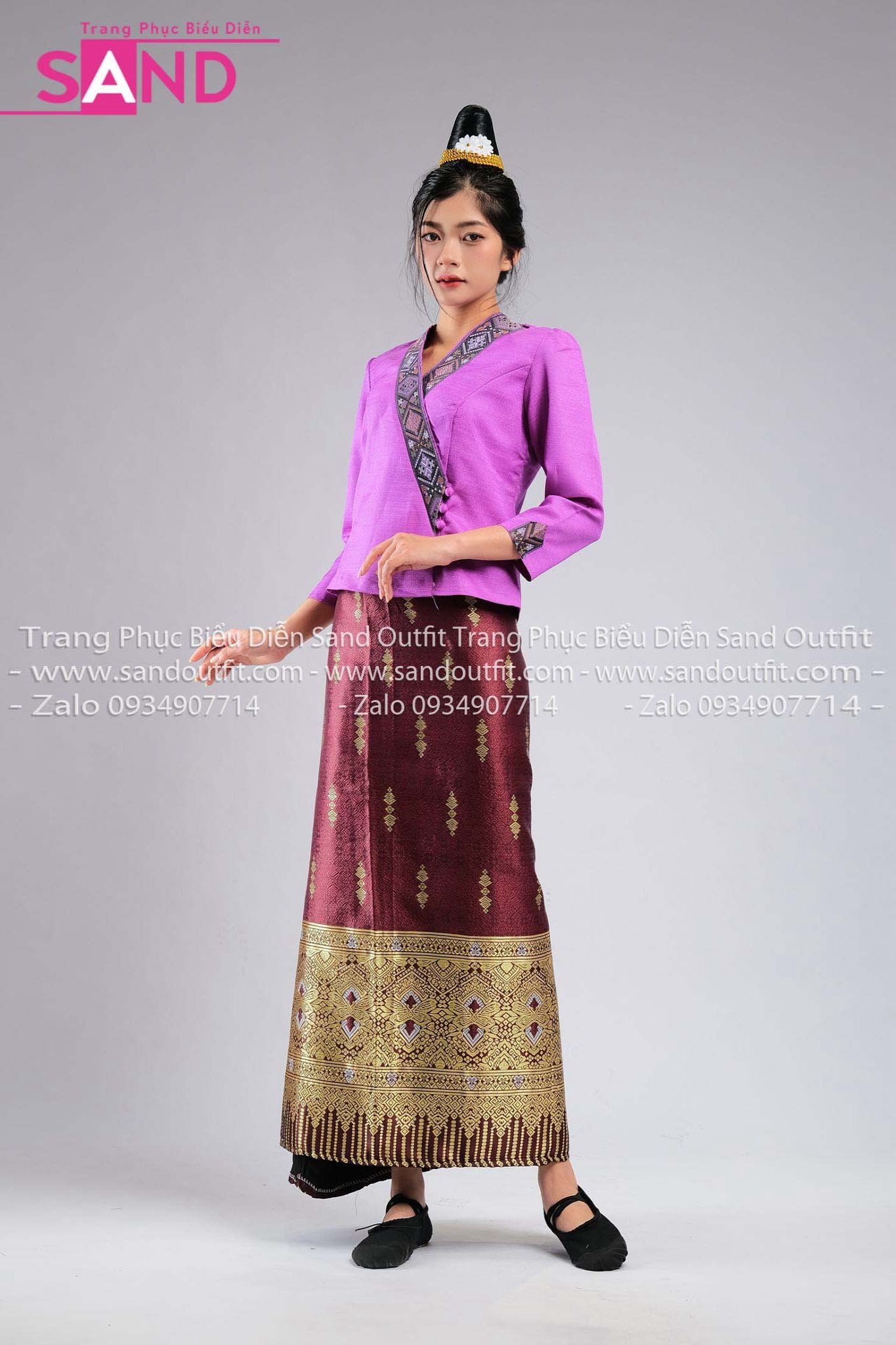 NLO0502 Trang Phục Dân Tộc Lào Màu Hồng Đỏ Nâu Nữ - Dài