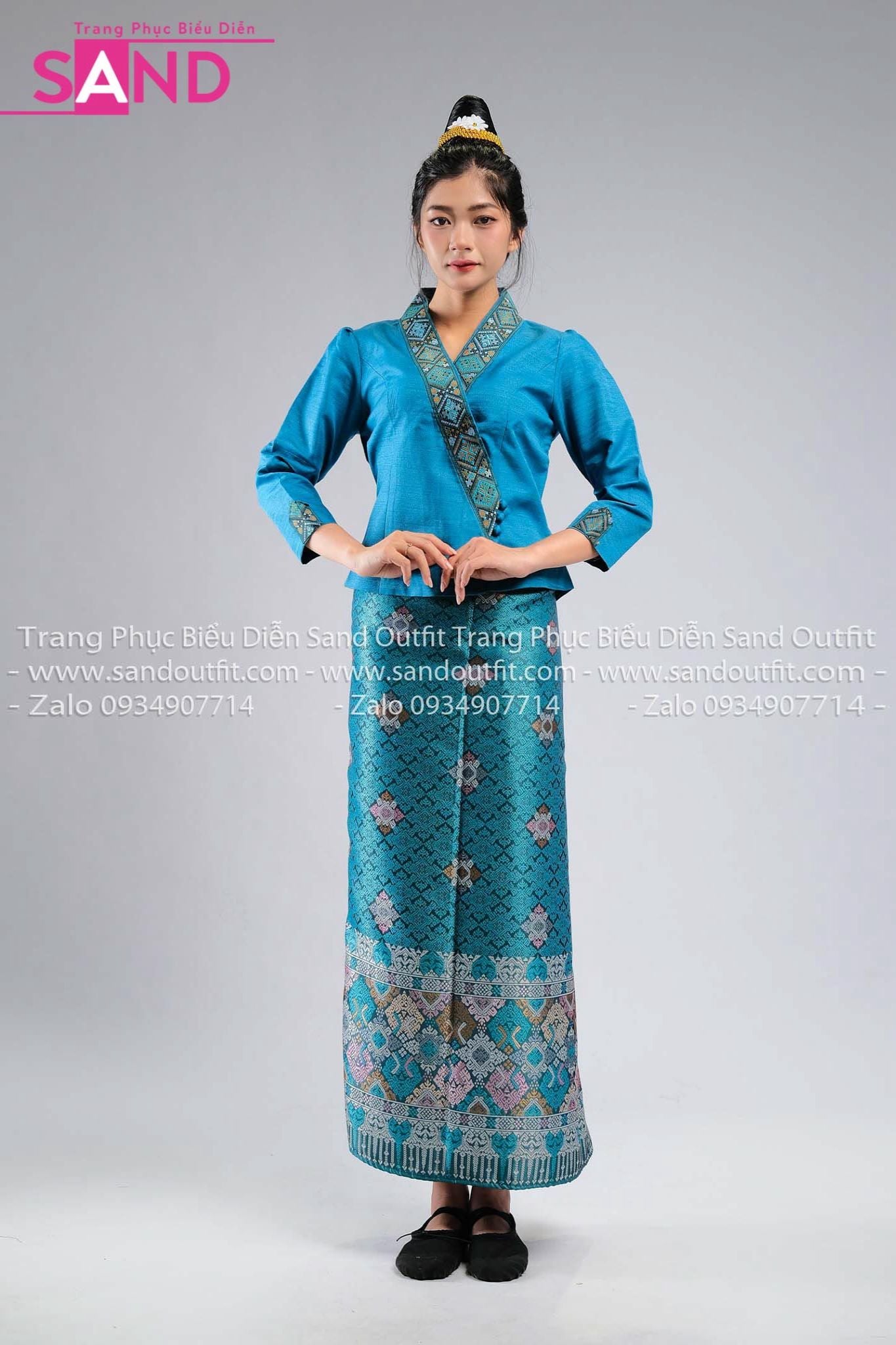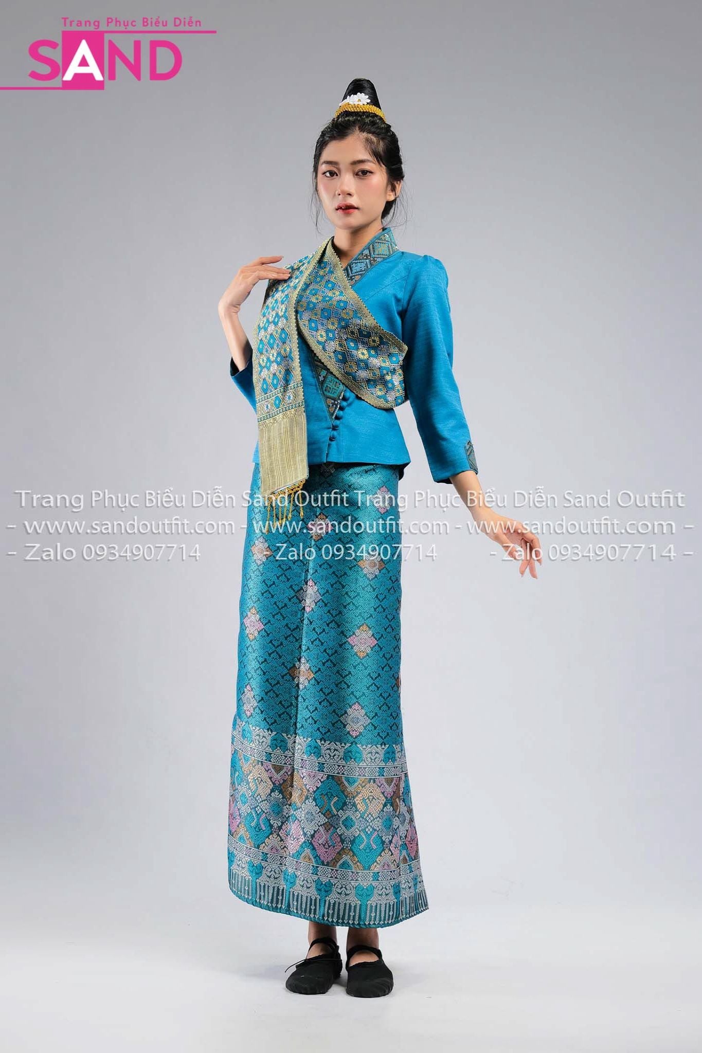 NLO0804 Trang Phục Dân Tộc Lào Màu Xanh Lá Mạ Nữ - Dài