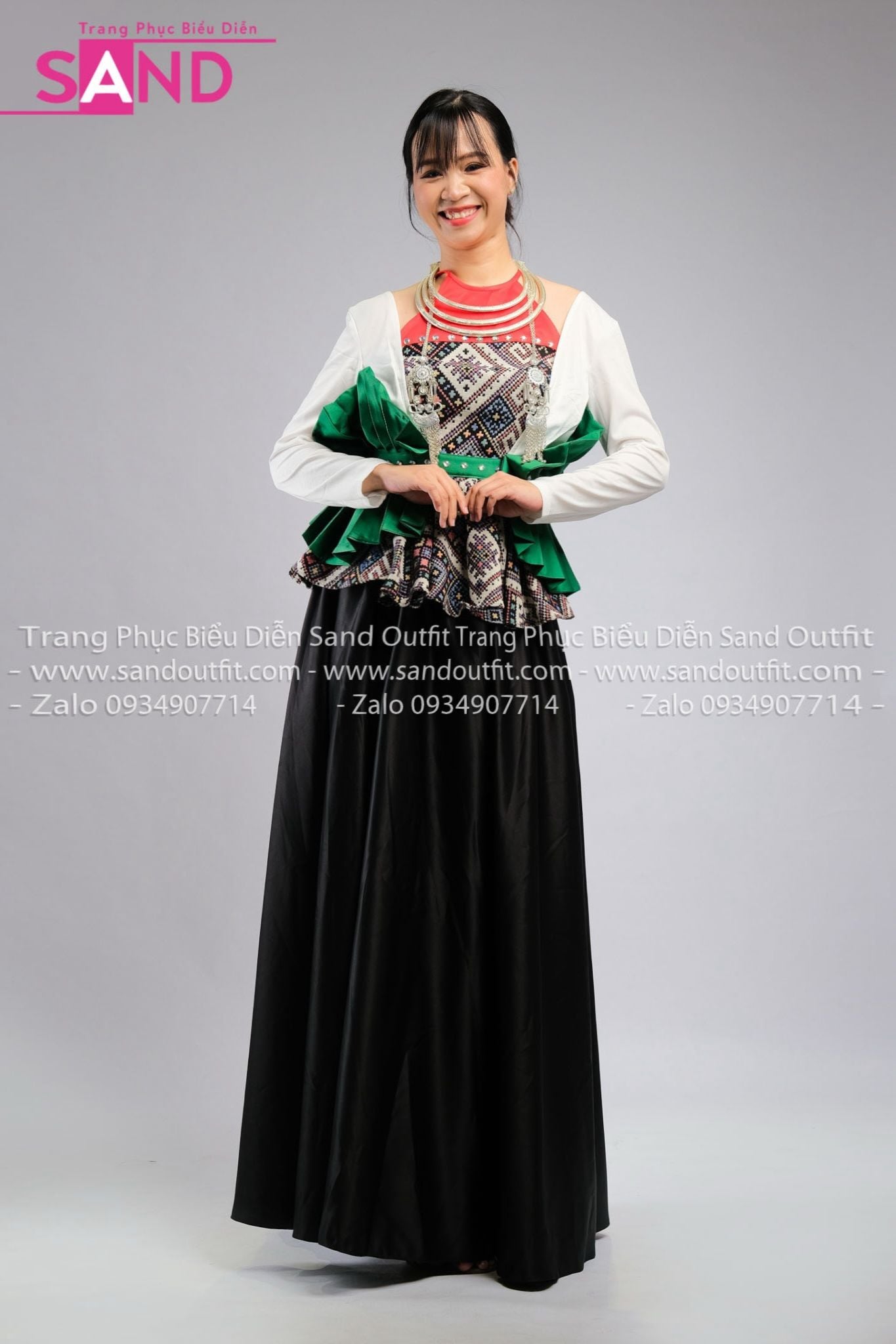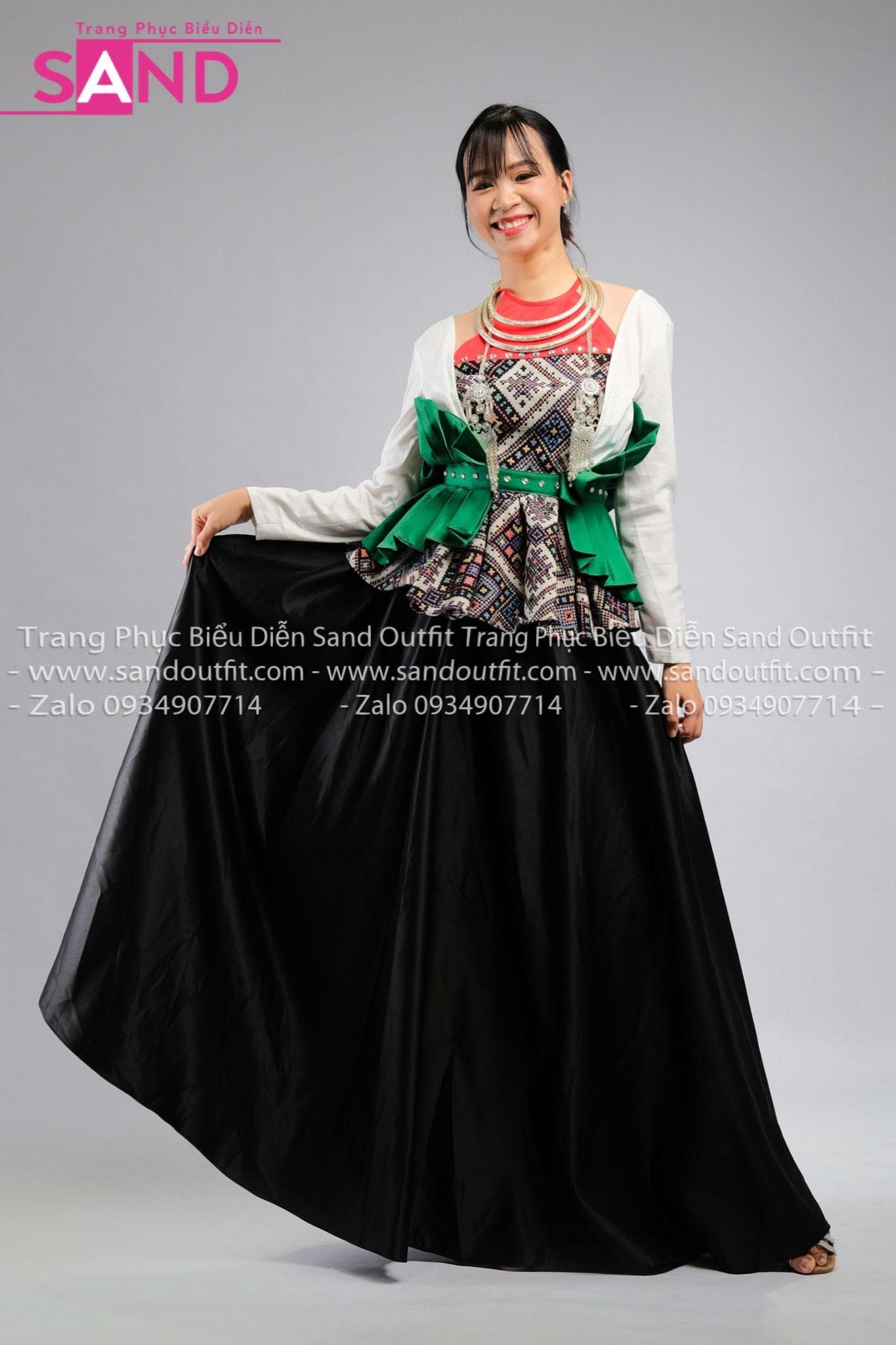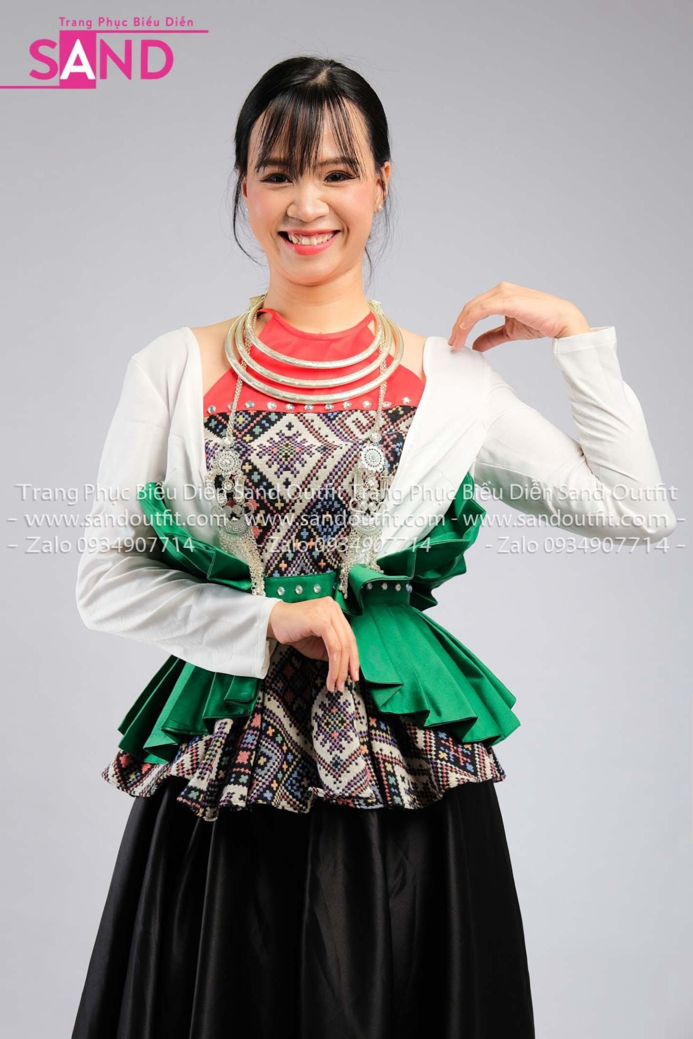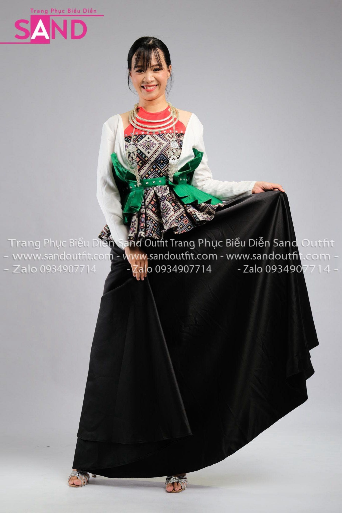 NMU0004 Trang Phục Dân Tộc Mường Nữ Thiết Kế Thổ Cẩm Xoè Eo