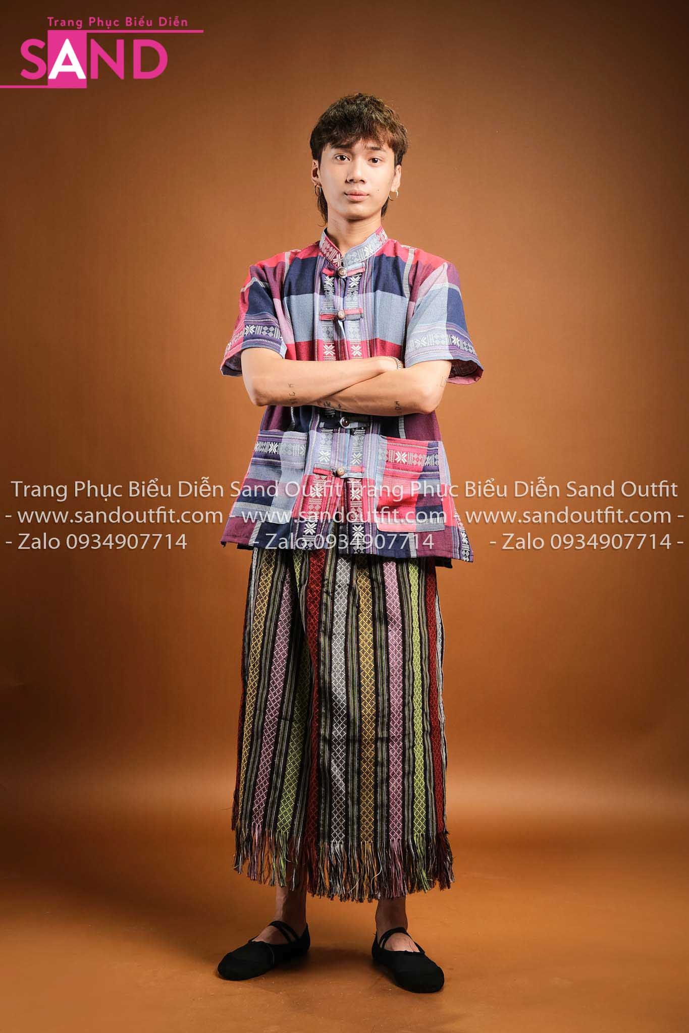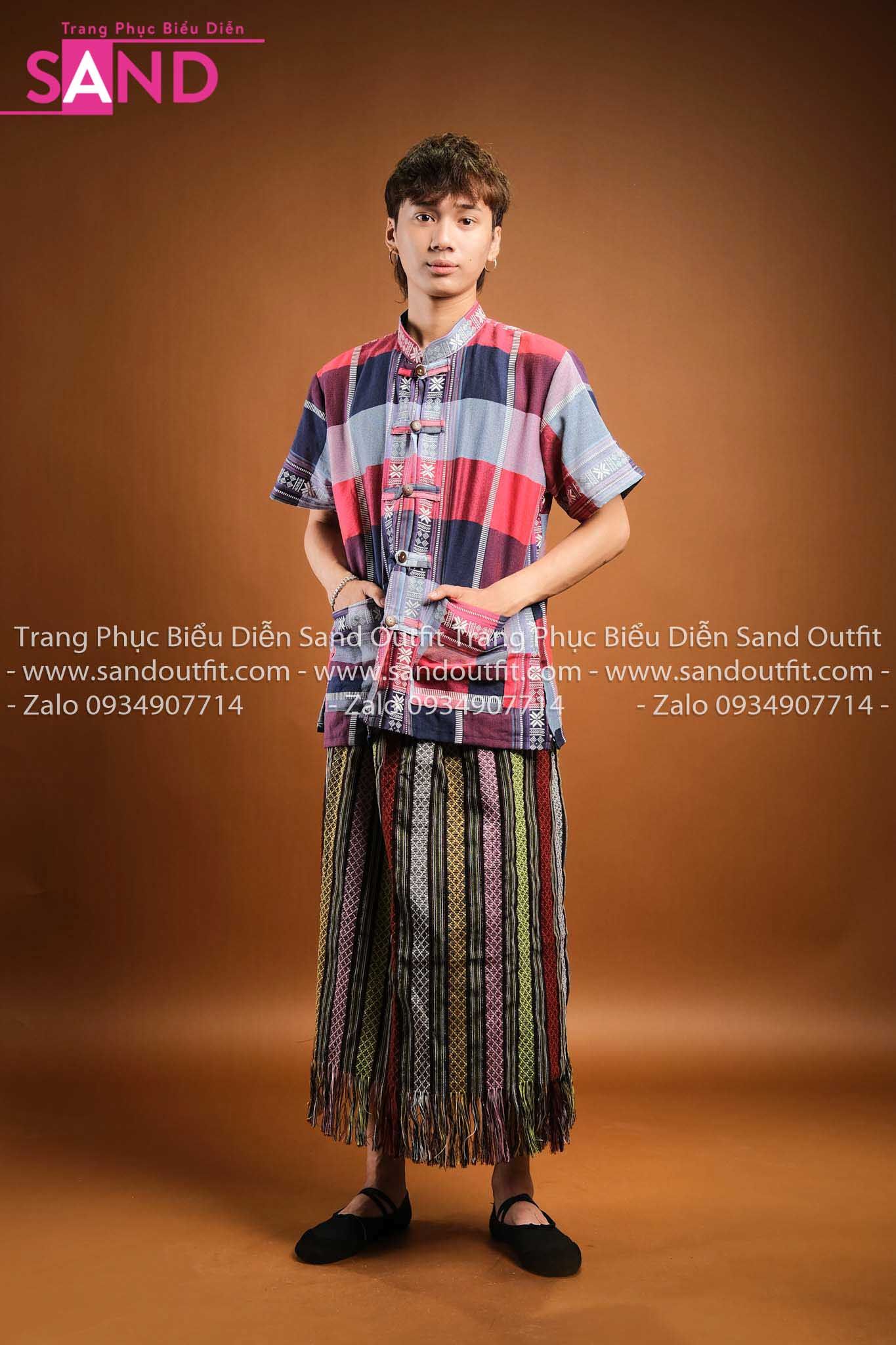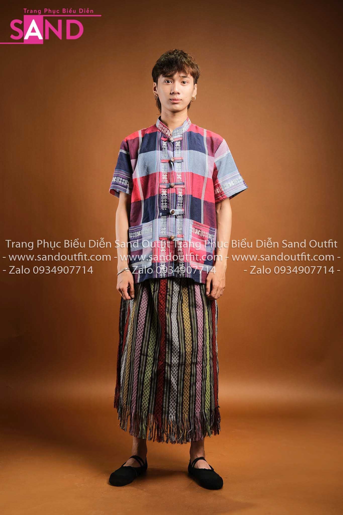 NCM0404 Trang Phục Dân Tộc Chăm - Nam (mẫu caro đỏ xanh)