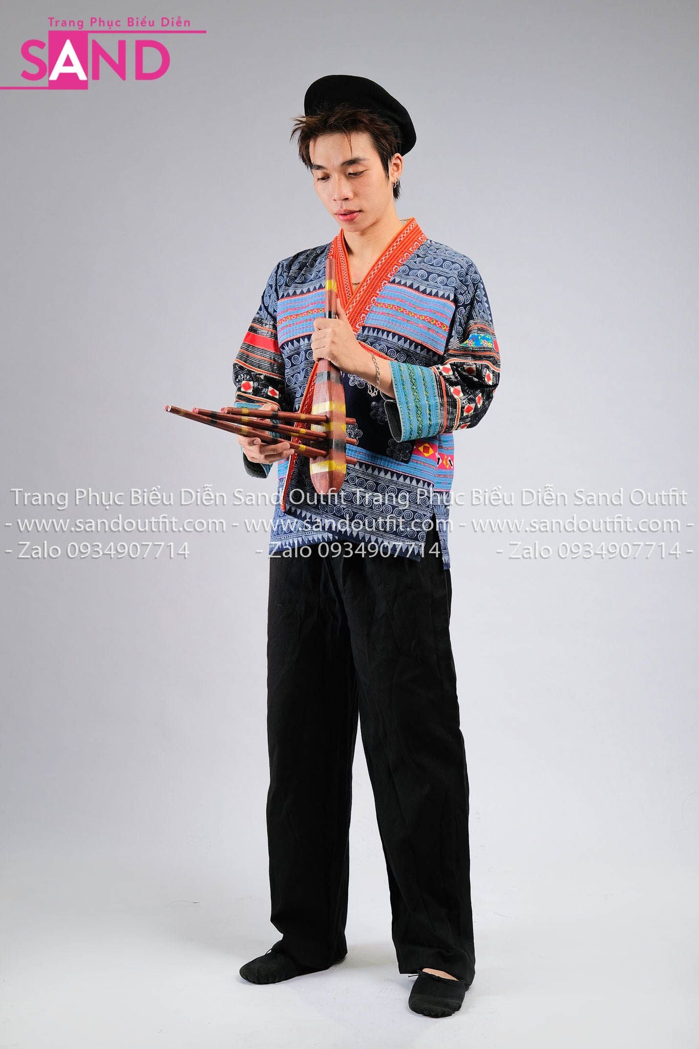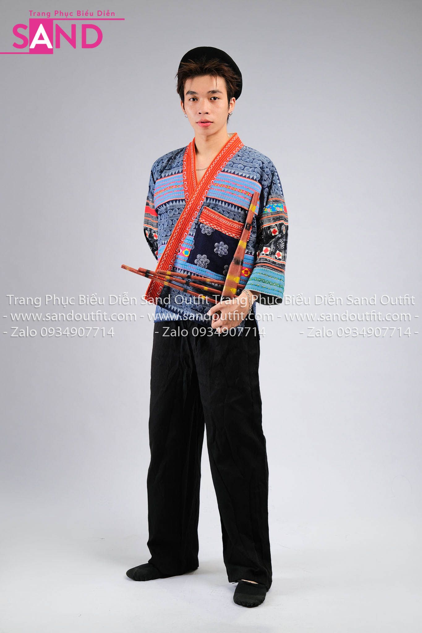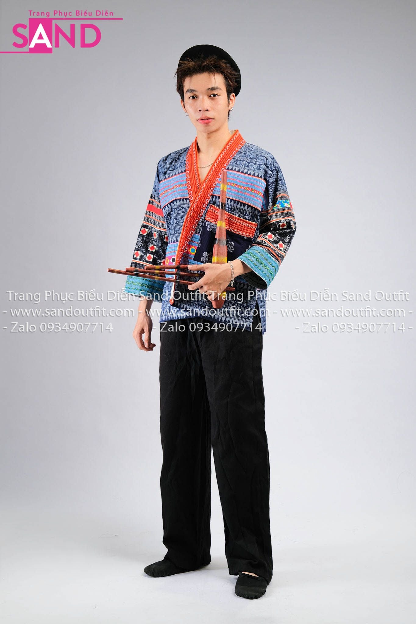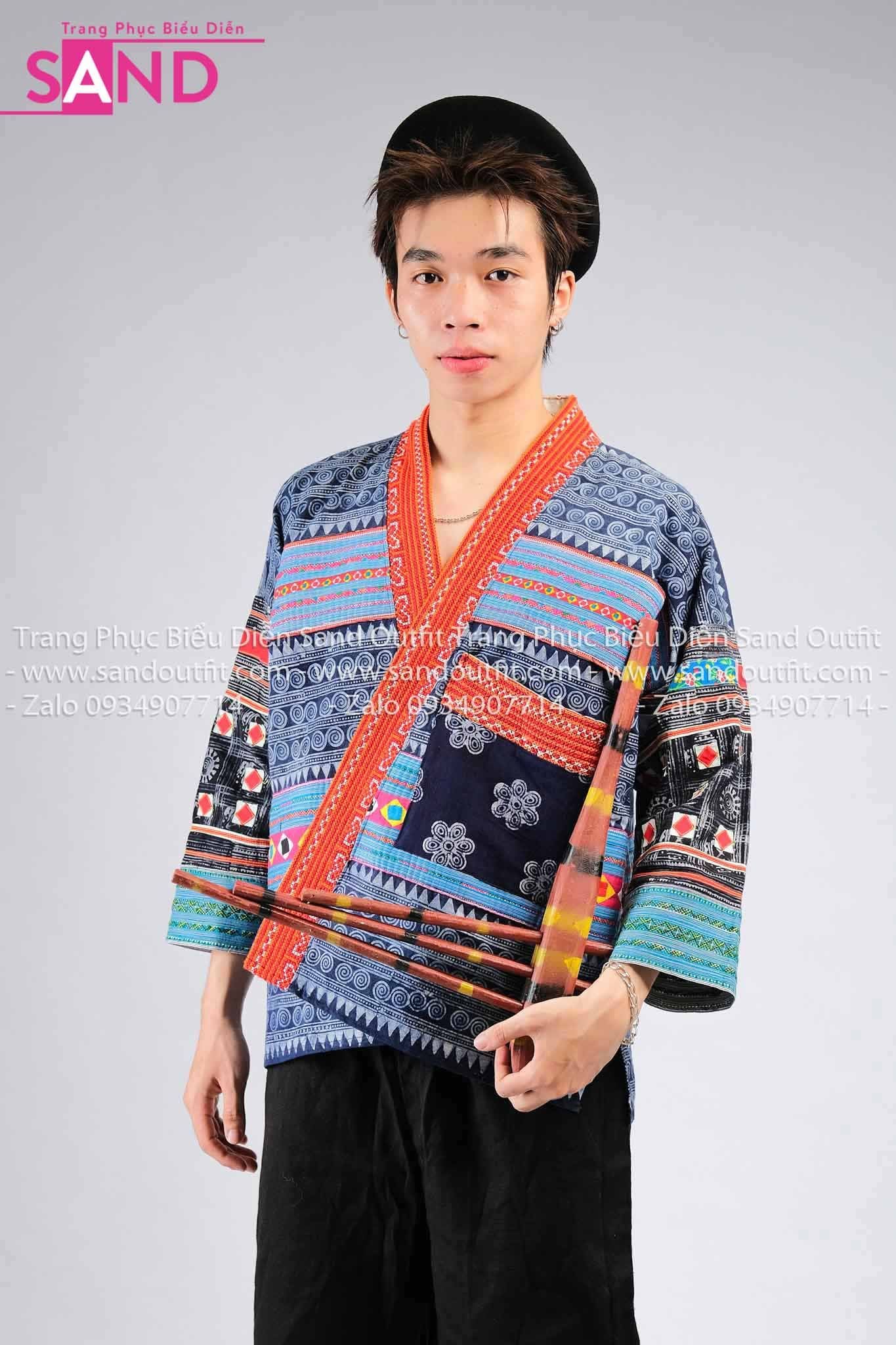 NHM0807 Trang Phục Dân Tộc H'Mông Nam Cách Tân Hoạ Tiết Thổ Cẩm - Xanh