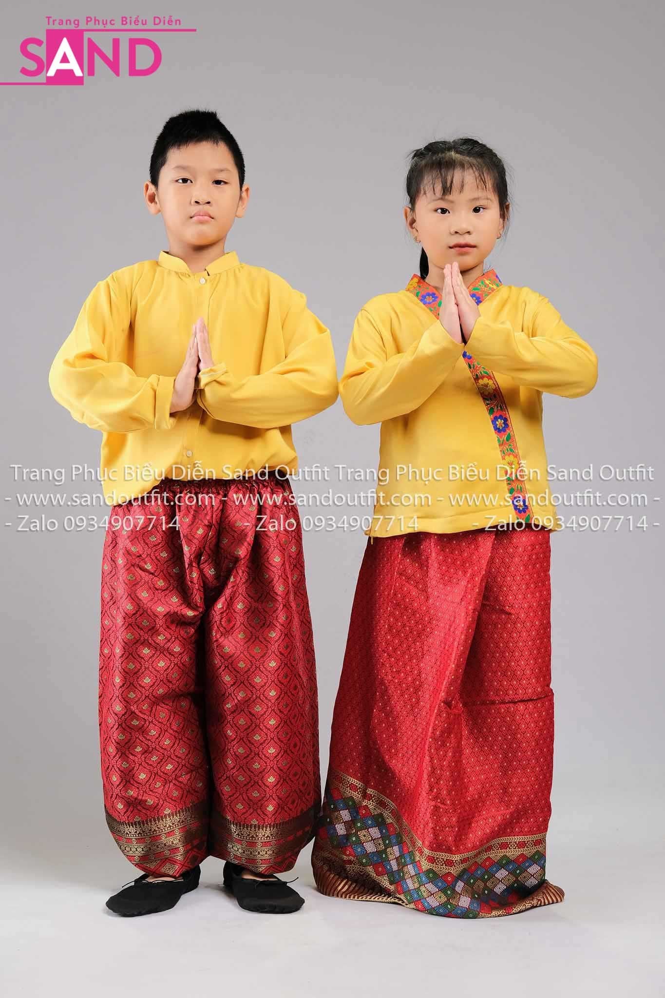 KLO0301 Trang Phục Dân Tộc Trẻ Em - Lào Đỏ Vàng Nam