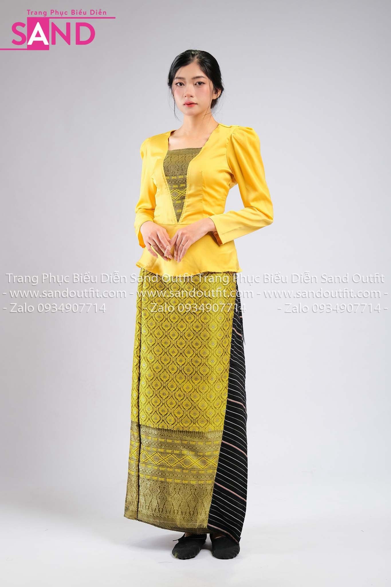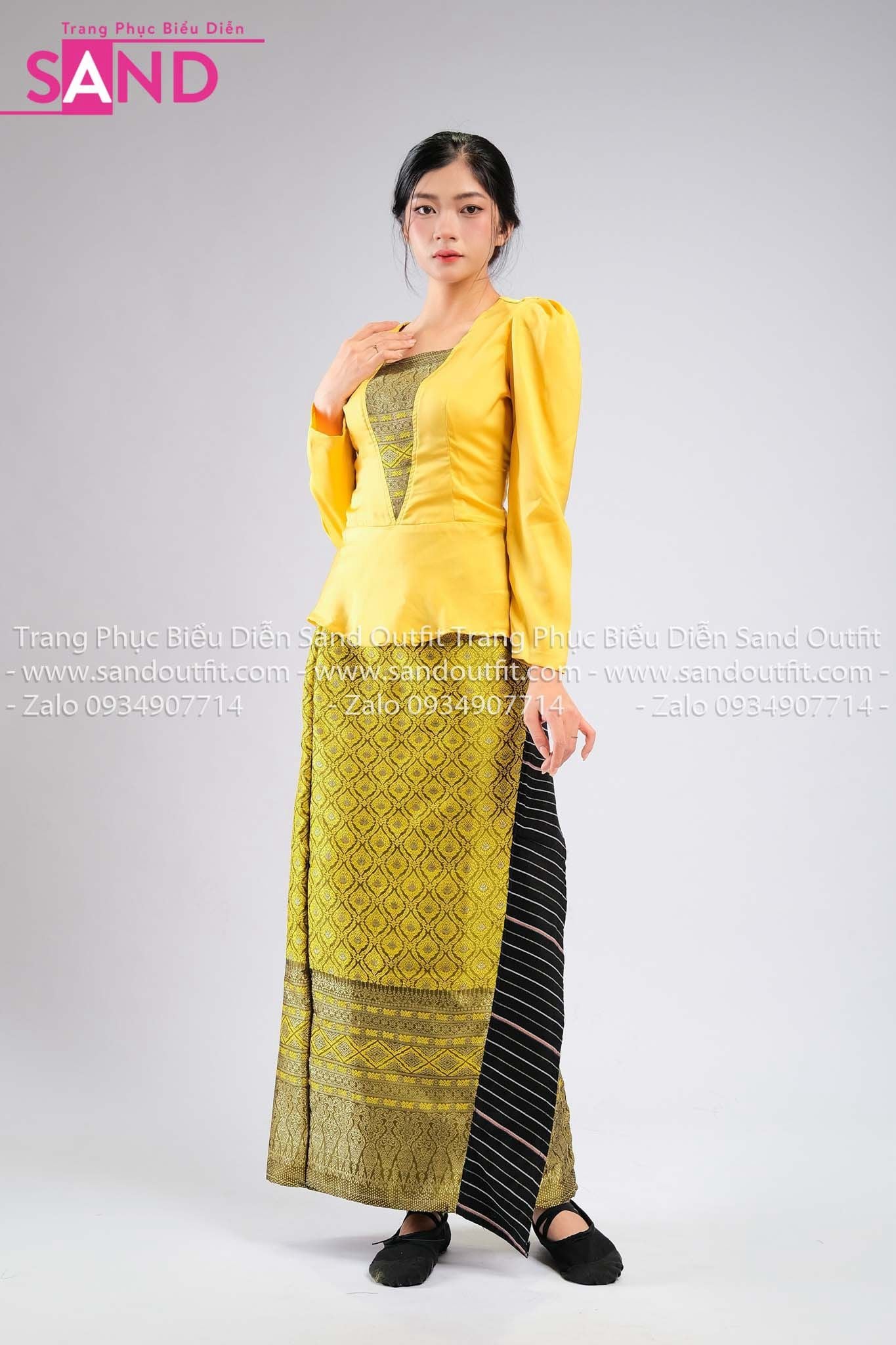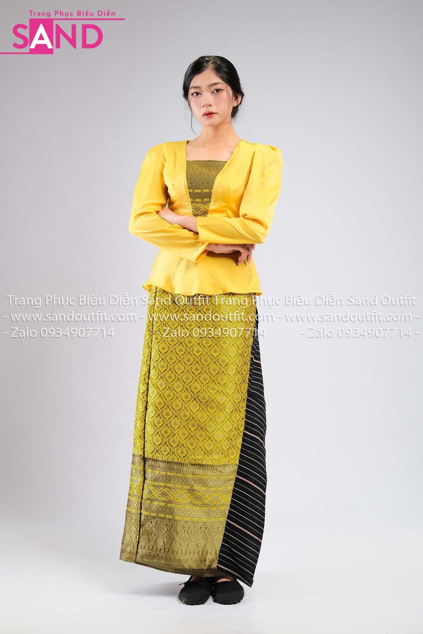 TNY0302 Trang Phục Hoá Trang Myanmar Vàng Hoạ Tiết - Nữ