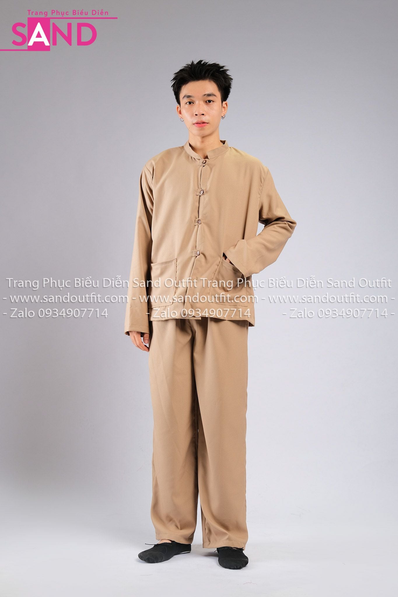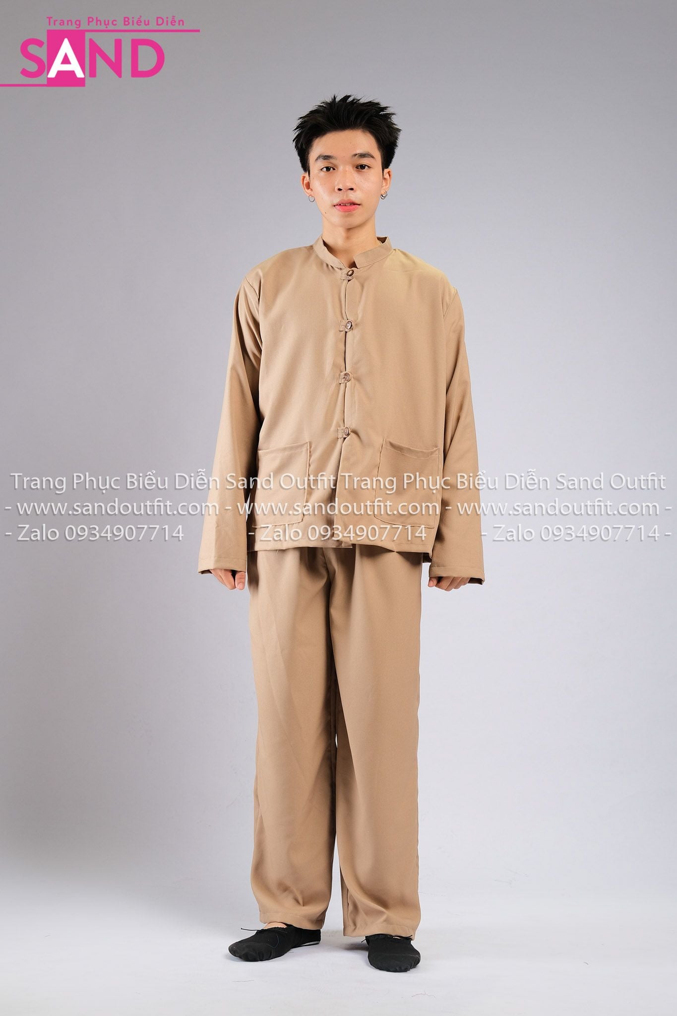 TNY1102 Trang Phục Hoá Trang Myanmar Nâu Trơn - Nam