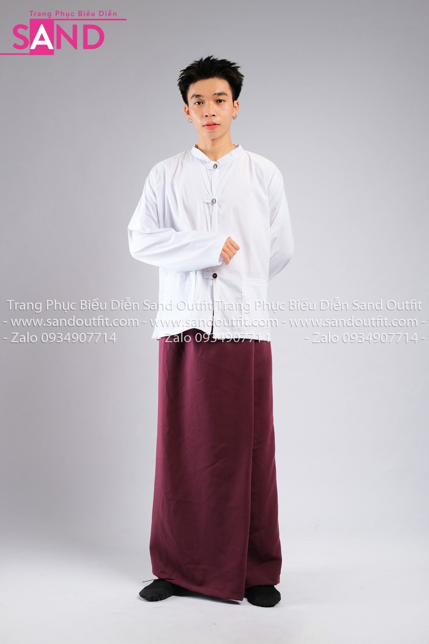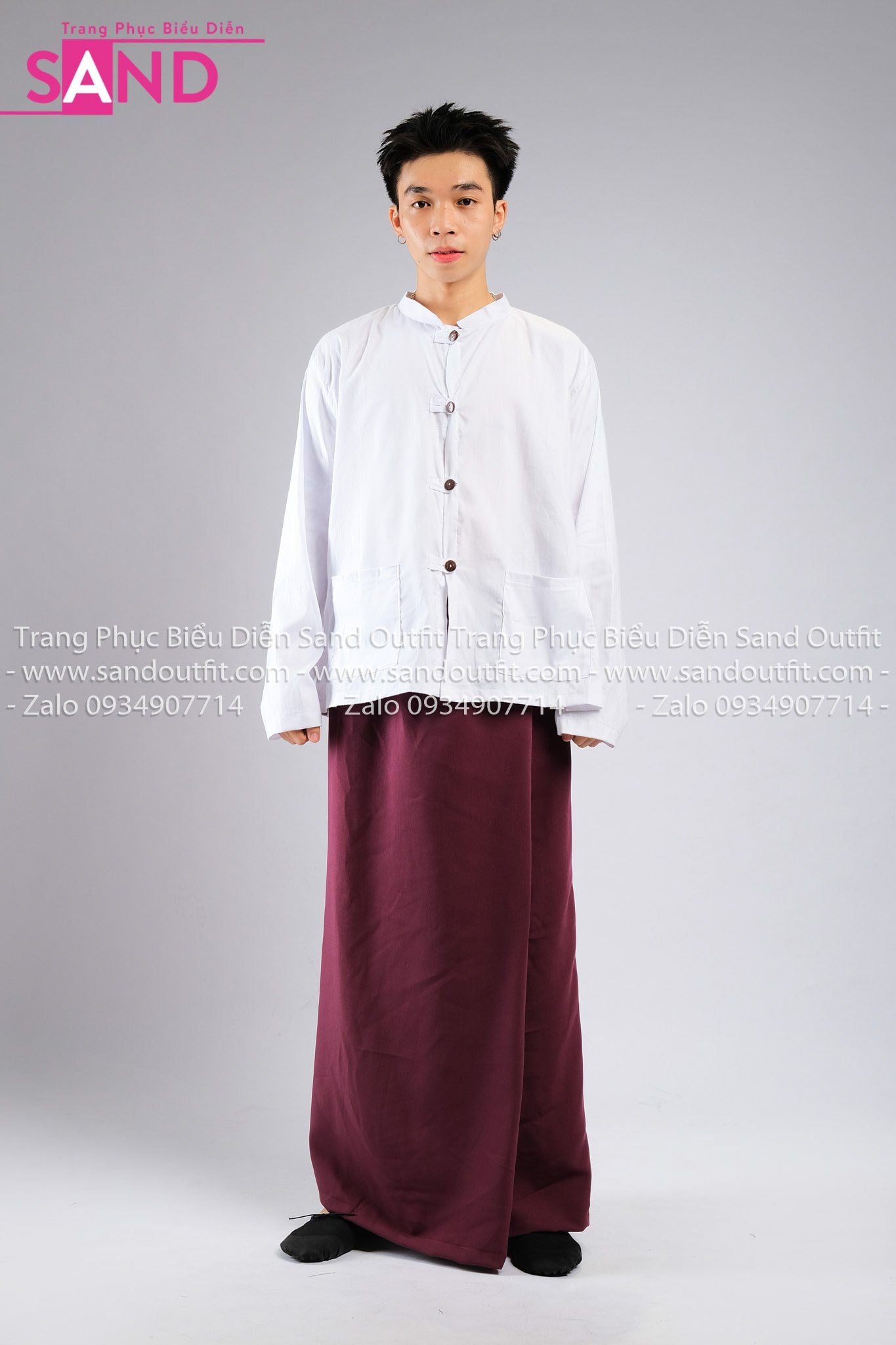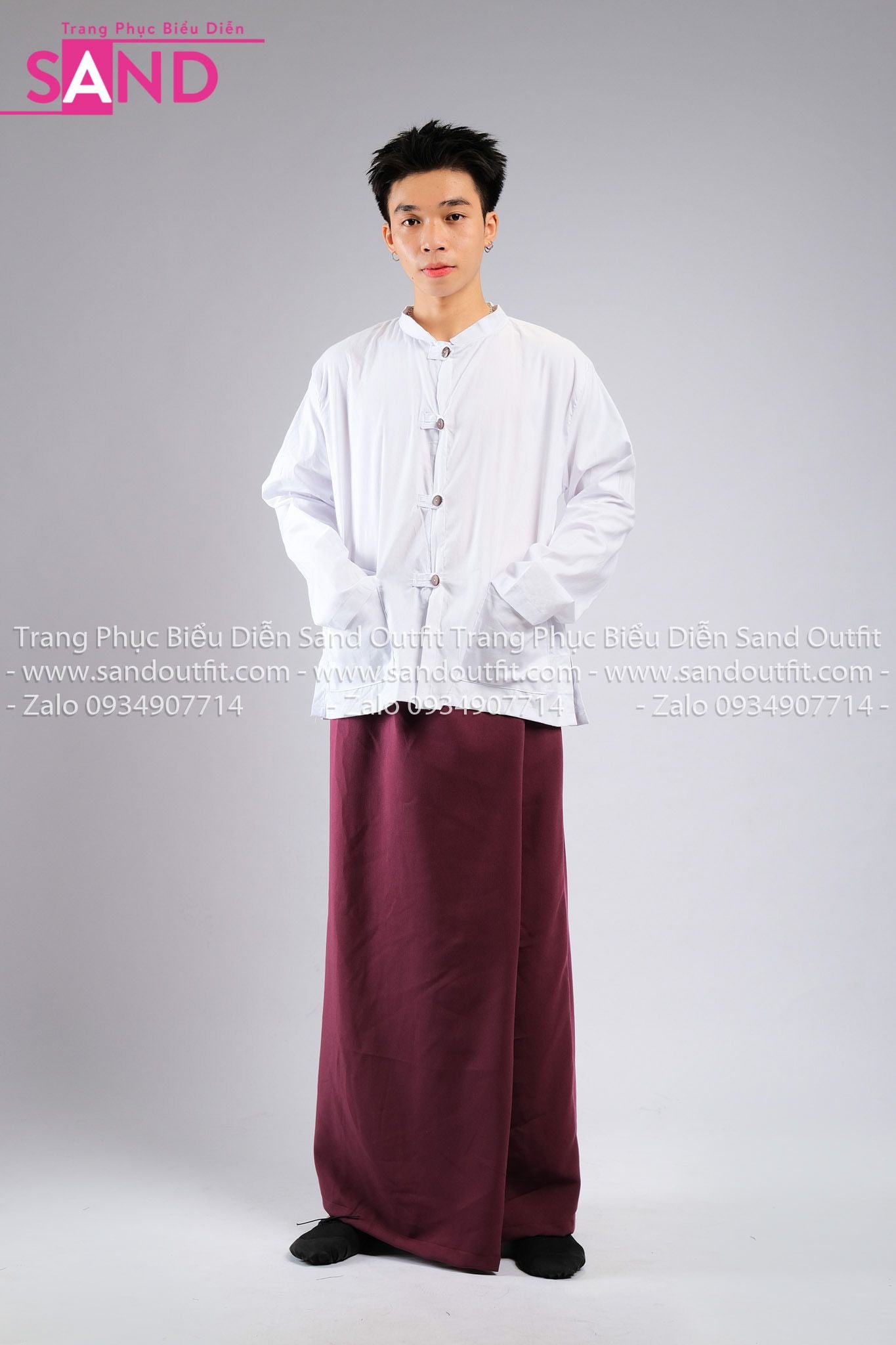 TNY0402 Trang Phục Hoá Trang Myanmar Trắng Đỏ Trơn - Nam