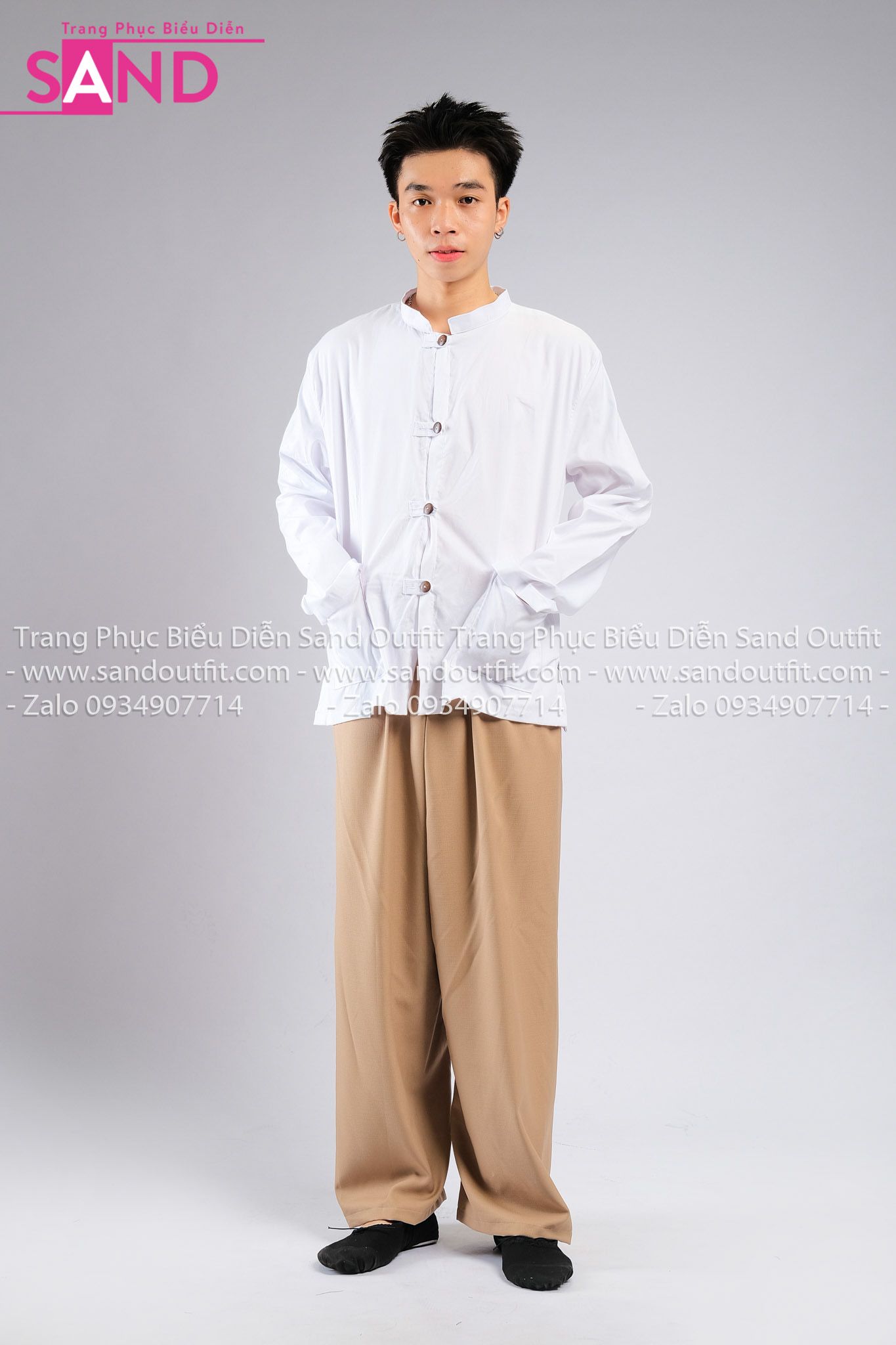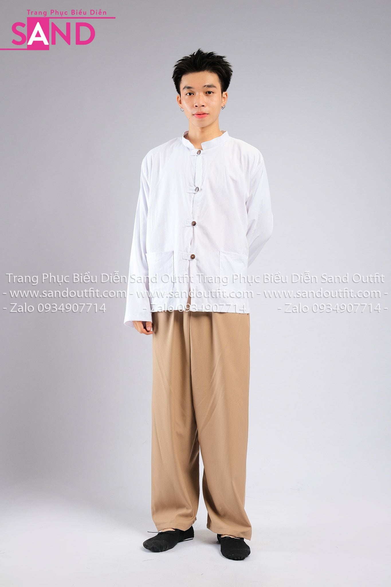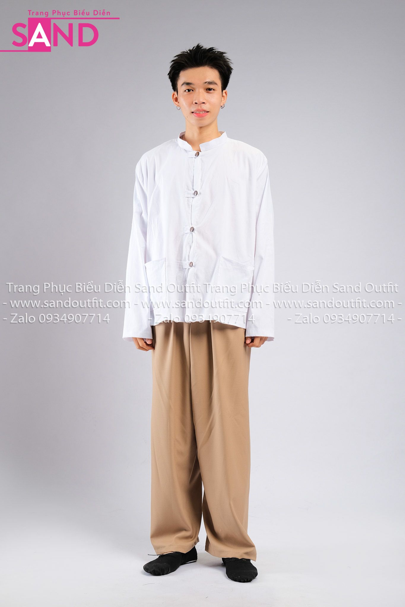 TNY1101 Trang Phục Hoá Trang Myanmar Trắng Nâu Trơn - Nam