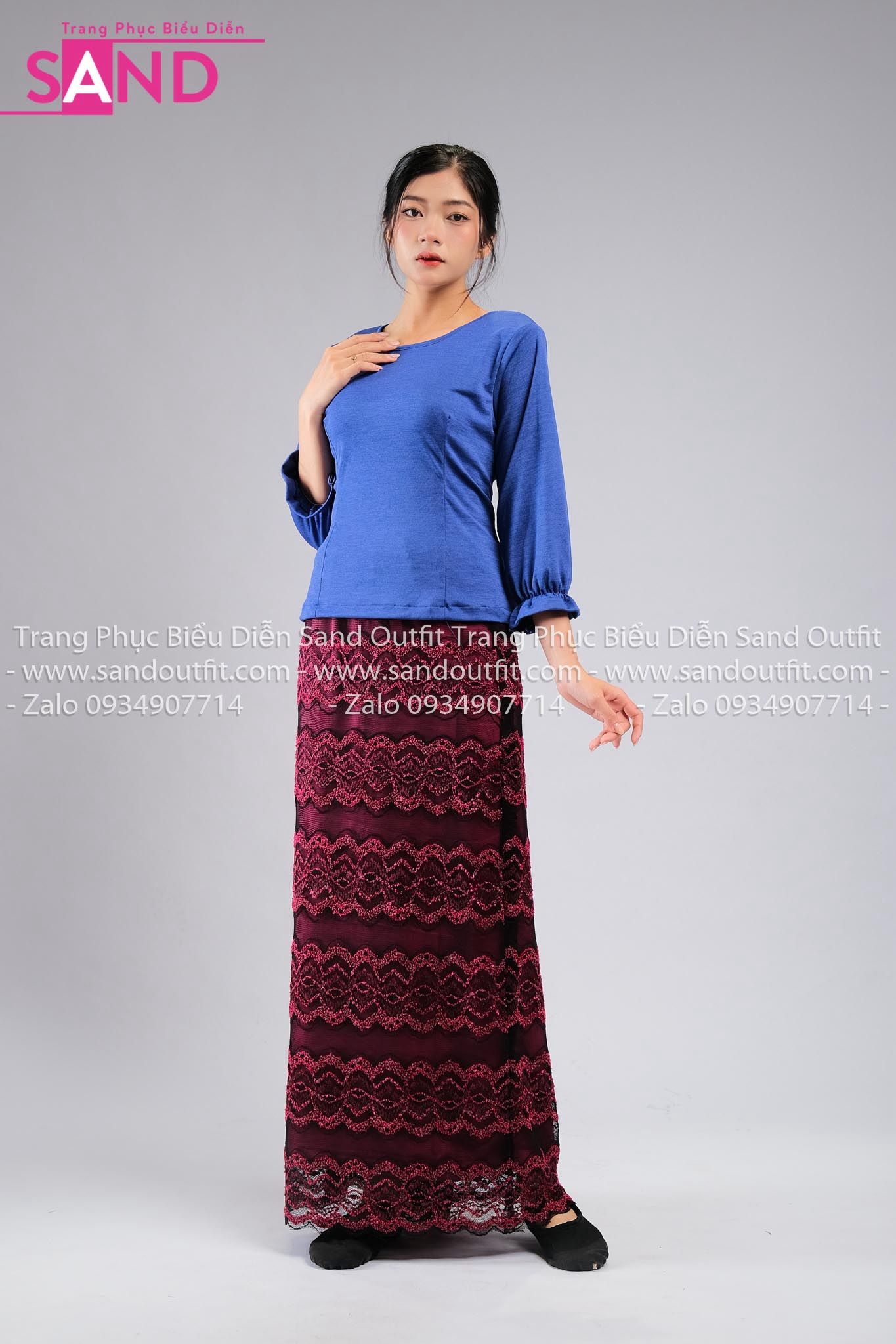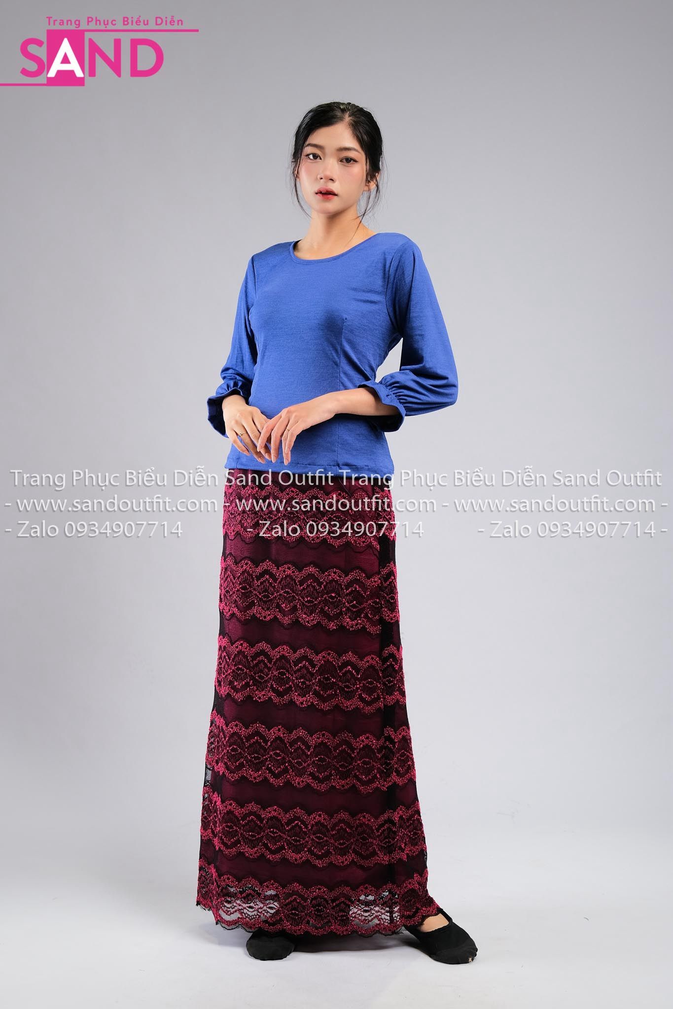 TNY0801 Trang Phục Myanmar Ren Xanh Đỏ - Nữ
