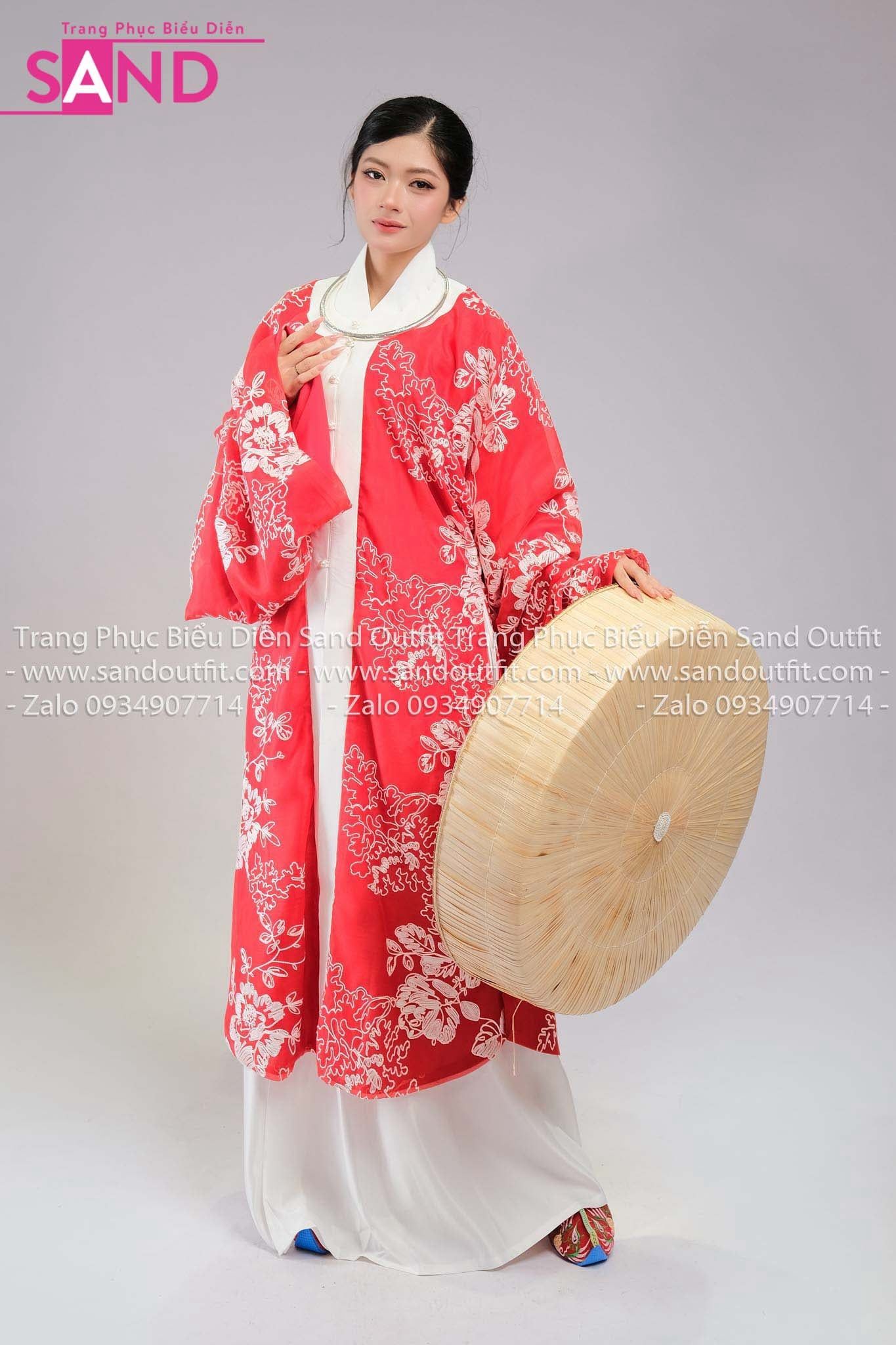TCD0401 Tứ Điên Vải Tơ Thêu Màu Đỏ Hoa Trắng