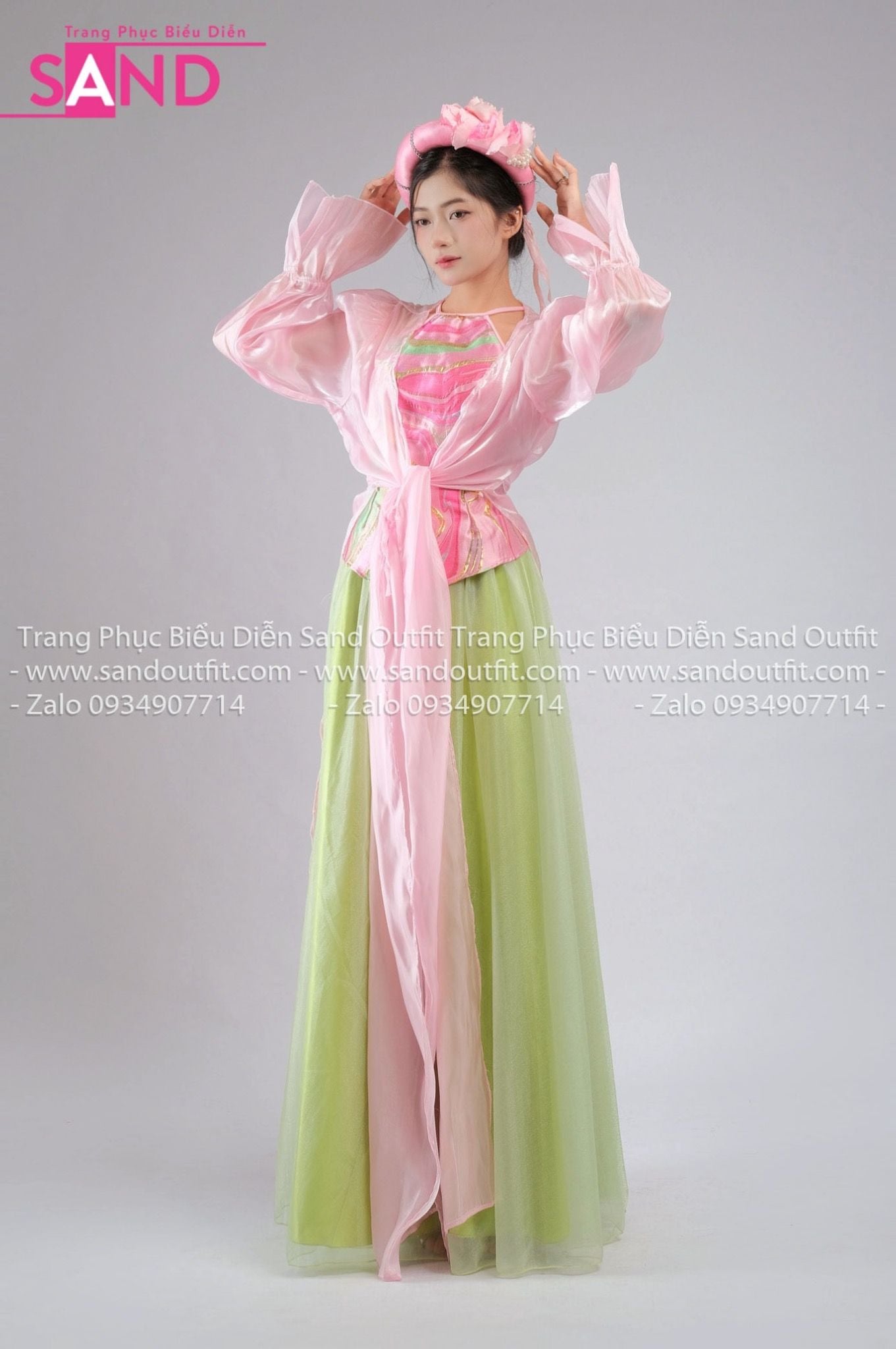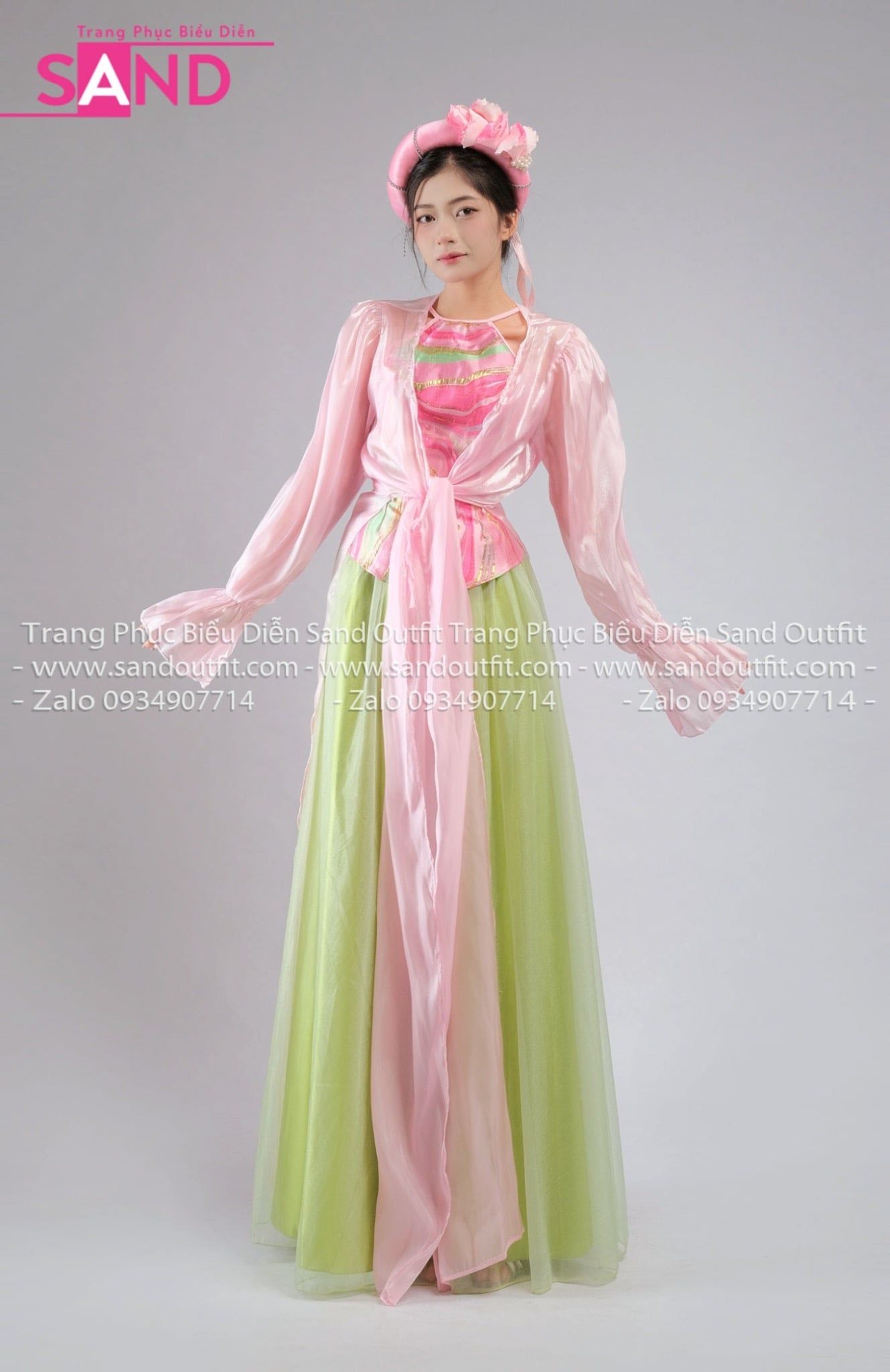 TYK0508 Tứ Thân Cách Tân Hoạ Viết Đụp Xanh Cốm Phối TTK0506 Khoác Voan Tay Phồng