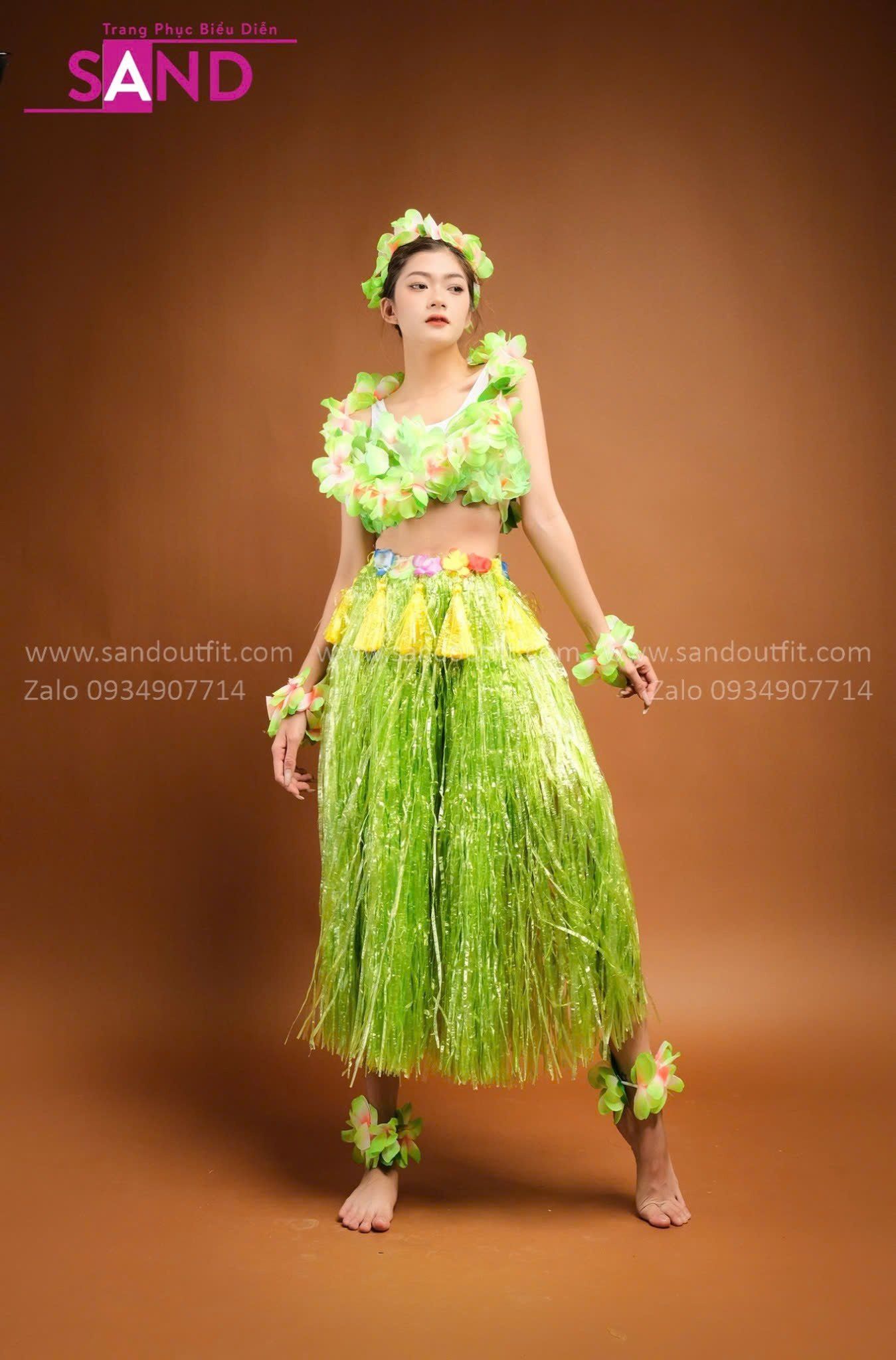 TMH0901 Váy Múa Hawaii Xanh Lá