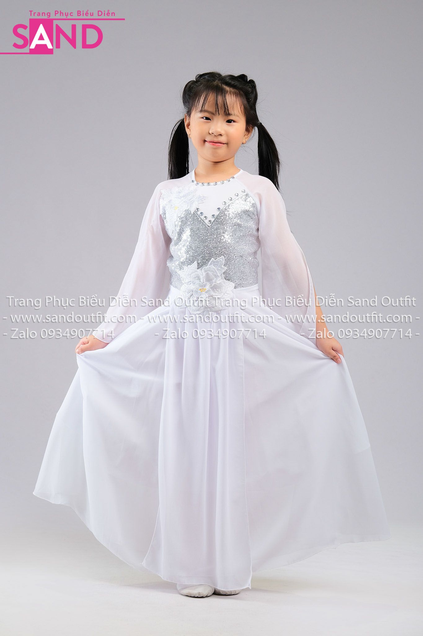 KMM0001 Váy Múa Trắng Trẻ Em (size cấp 1 & cấp 2)