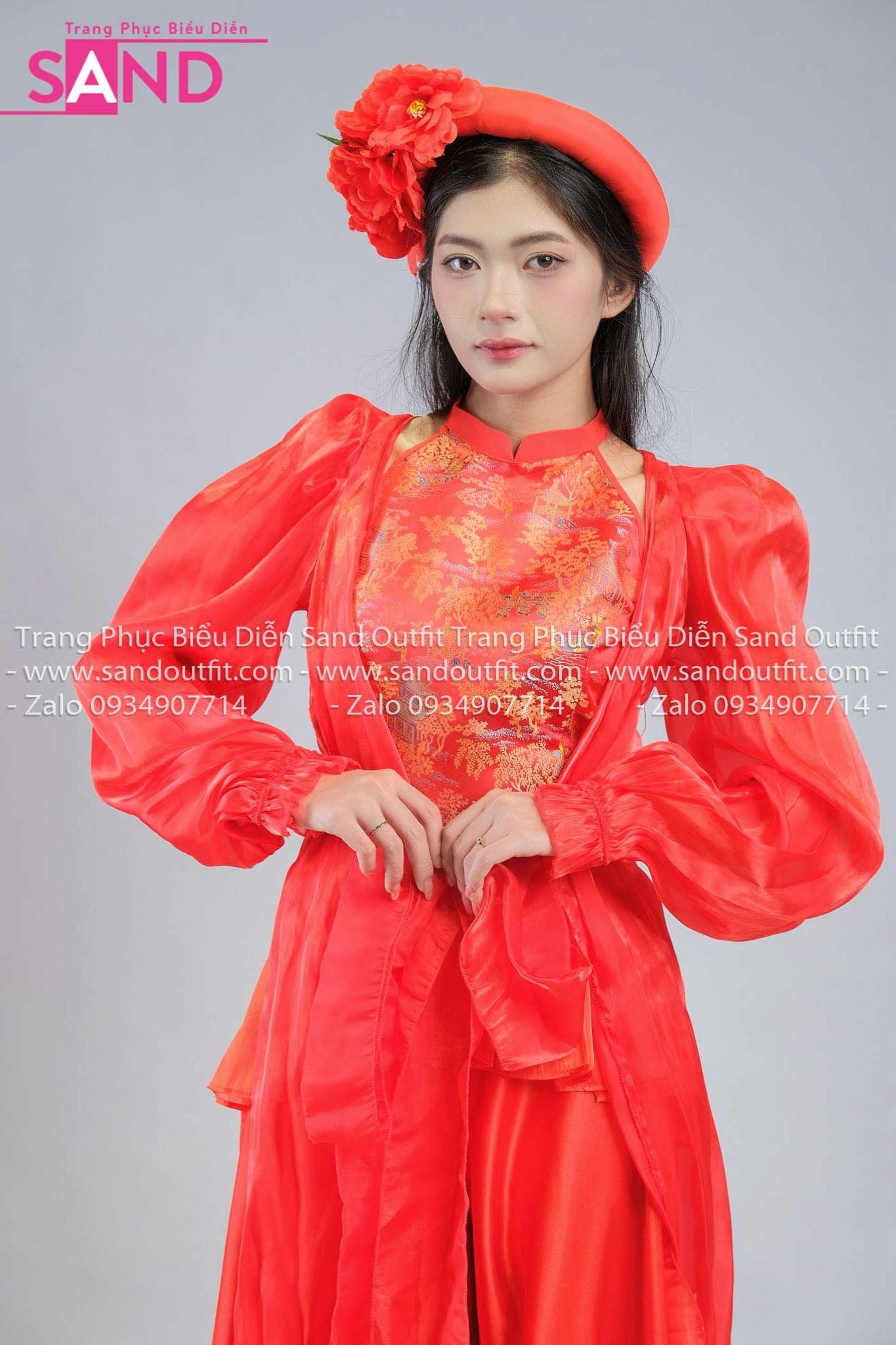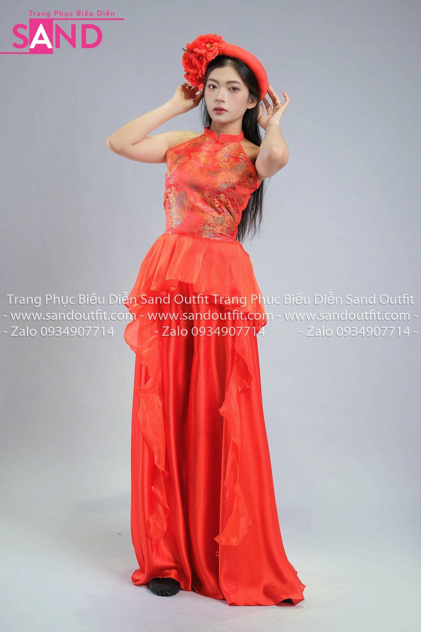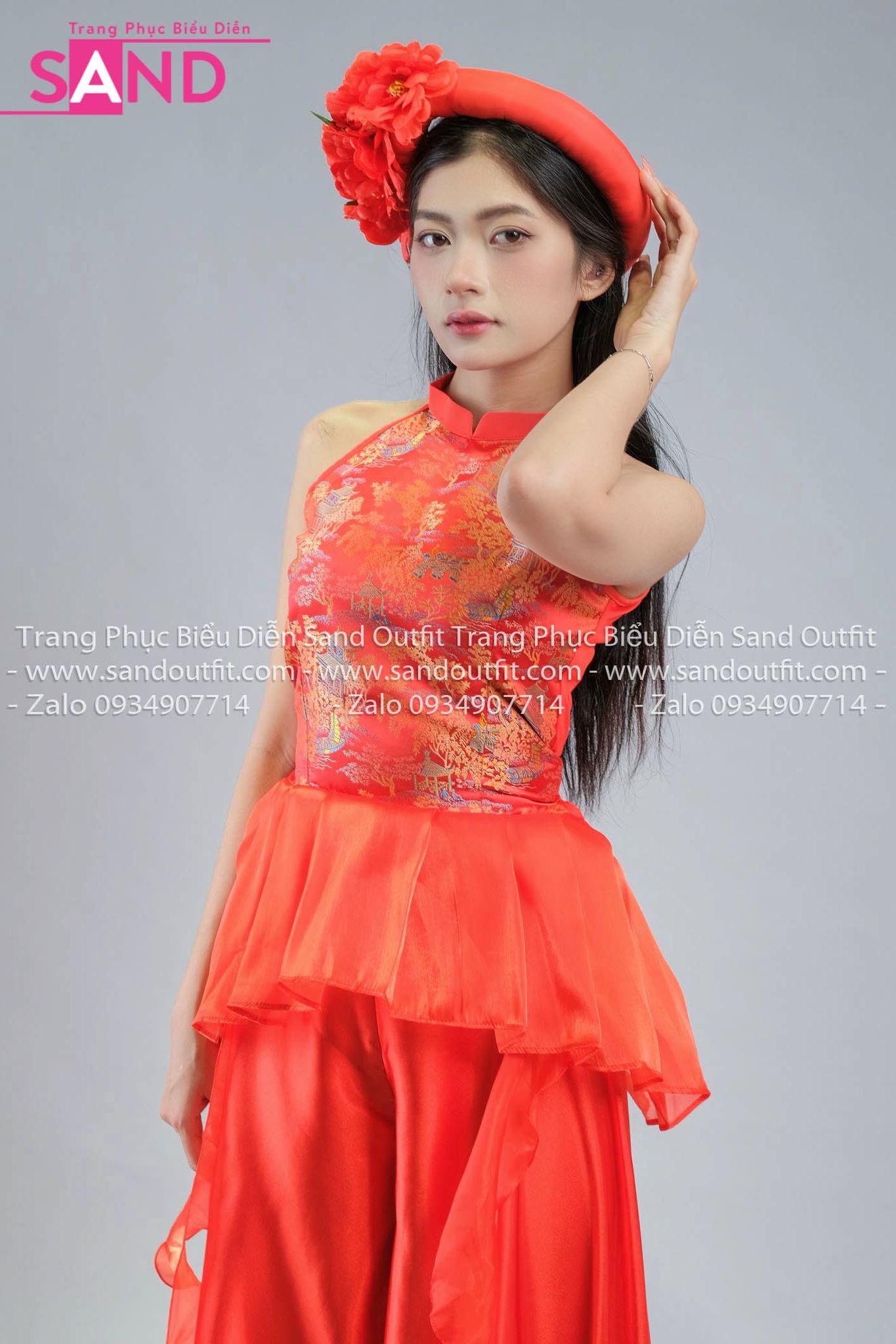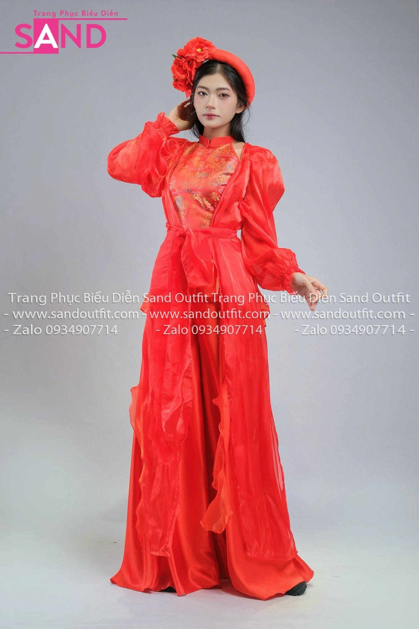 TYK0408 Yếm Gấm Đỏ phối quần váy đỏ tặng kèm vấn