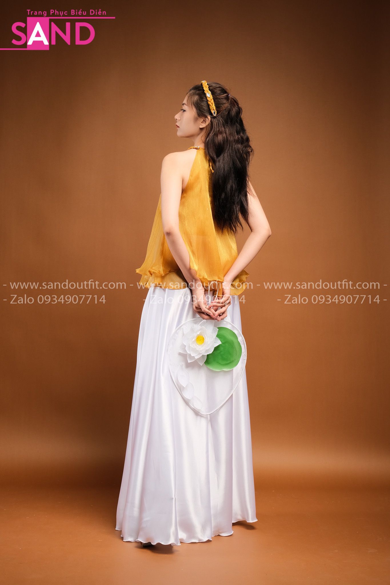 TYD0304 Yếm Voan Tơ Vàng Nâu Phối Quần Váy Trắng